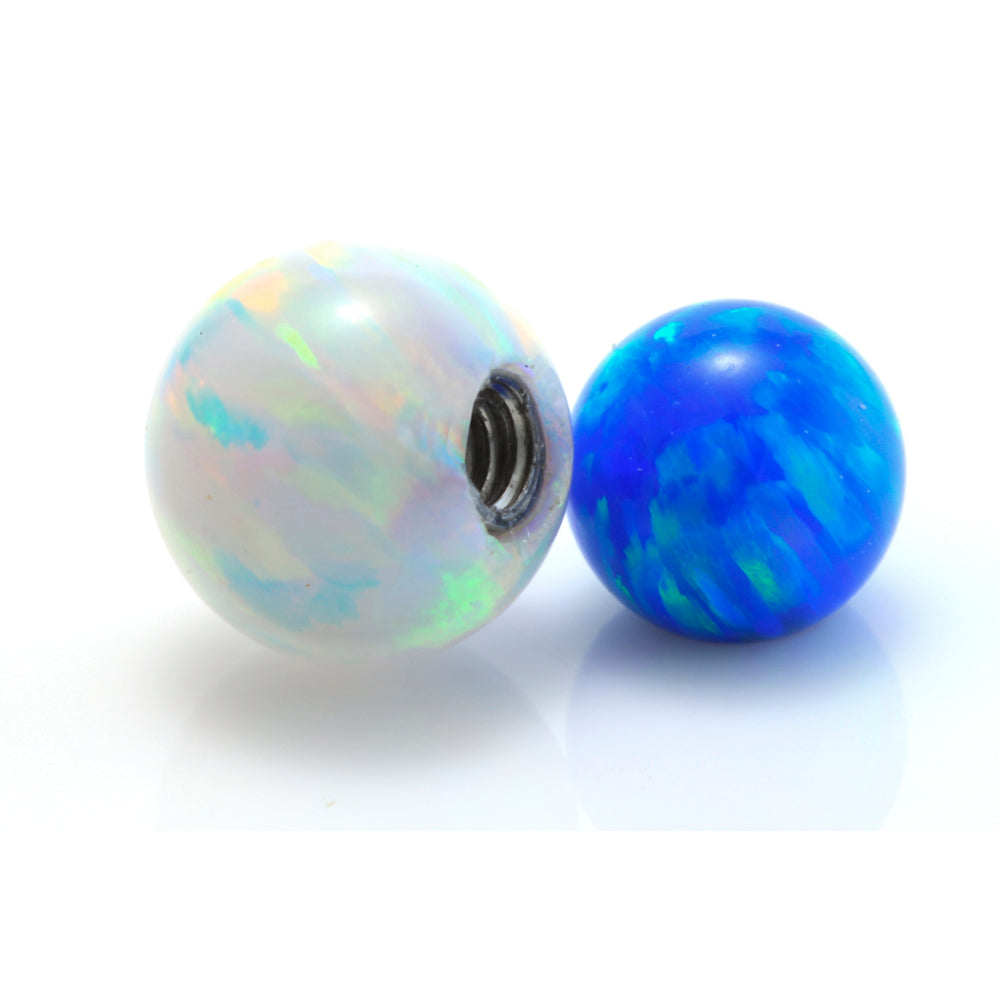 Synthetic Opal Ball on Steel Attachment Gauge: 1.2mm or 1.6mm Size: 3/4/5/6mm Colours: White, Pink, Blue