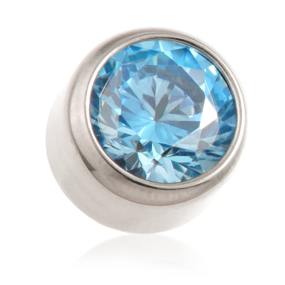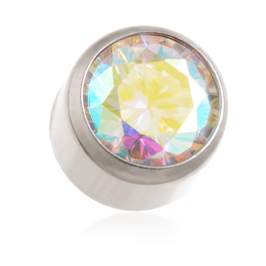 Ti Internal Bezel Gem Attachment Gauge: 1.2mm (0.9mm thread) Size: 3mm / 4mm Gem Colour: Crystal / AB Crystal / Aqua Medical Grade Titanium 6Al-4VEli ASTM:F-136