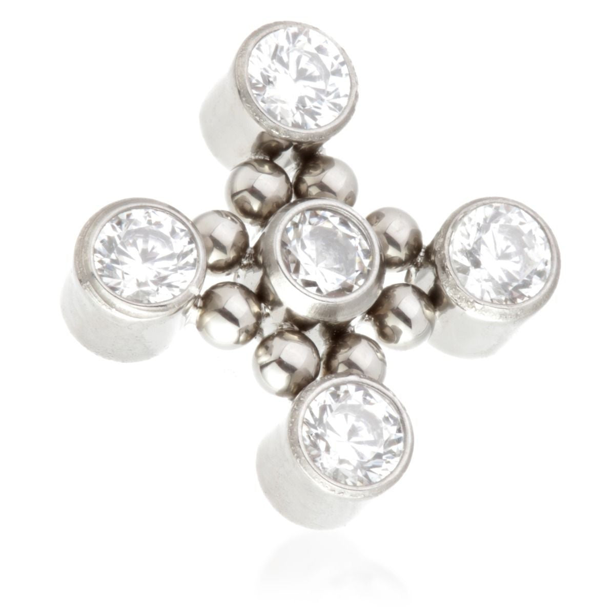 Titanium Internal Jewelled Bezel Flower with Surrounding Beads Attachment Gauge: 1.6mm (1.2mm thread)Size: 6mmGem Colour: CRCZ Gem Stones Medical Grade Titanium 6Al-4VEli ASTM:F-136