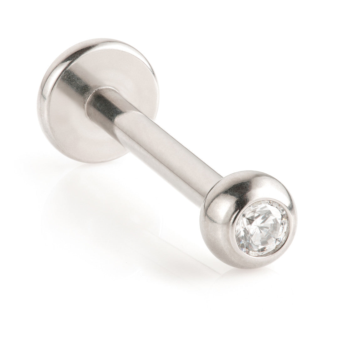 Ti Internal Labret with Gem Ball Attachment Gauge: 1.2mm (0.9mm thread)Sizes: 6mm / 8mm / 10mmAttachment Size: 3mmGem Colour: CrystalCZ Gem Stones Medical Grade Titanium 6Al-4VEli ASTM:F-136