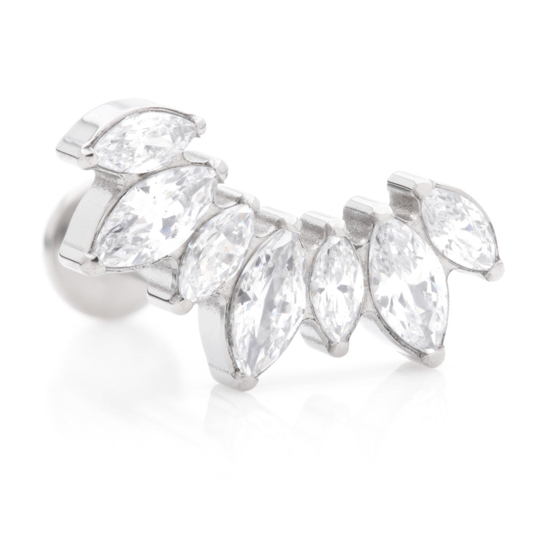 Titanium Internal Labret with Prong Jewelled Marquise Cluster Attachment Gauge: 1.2mm (0.9mm thread)Sizes: 6/8mmGem Colour: CRCZ Gem Stones Medical Grade Titanium 6Al-4VEli ASTM:F-136