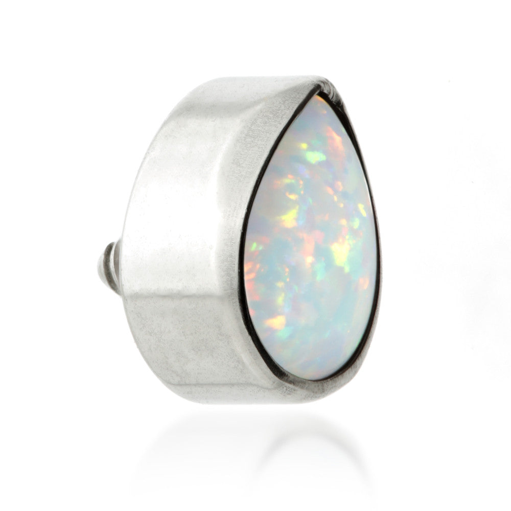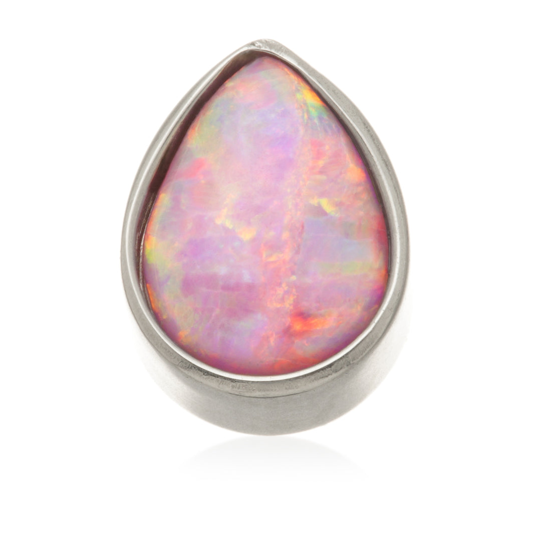 Titanium Internal Opal Bezel Teardrop Attachment Gauge: 1.2mm Sizes: 4.5mm Opal Colours: Blue, Pink, White Medical Grade Titanium 6Al-4VEli ASTM:F-136