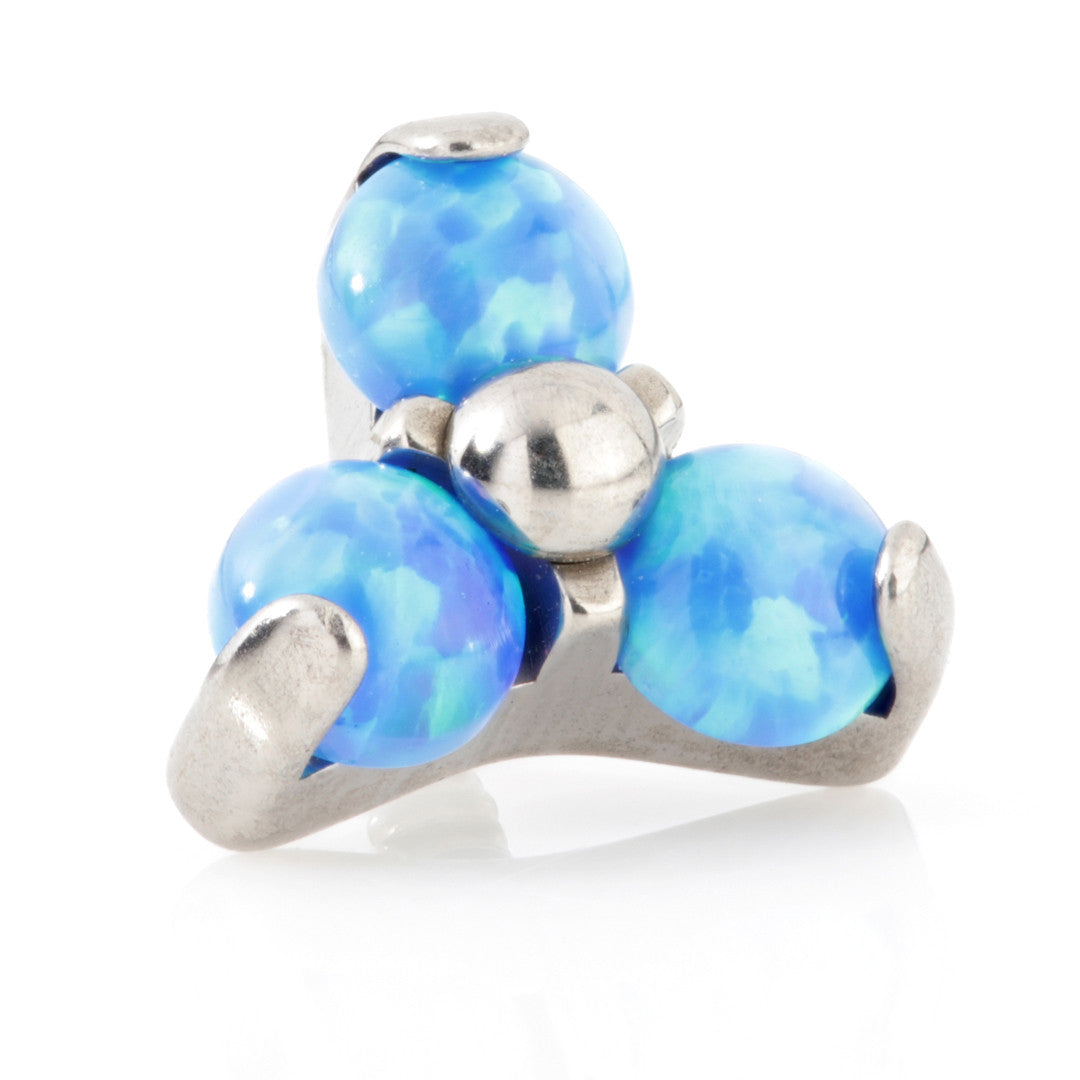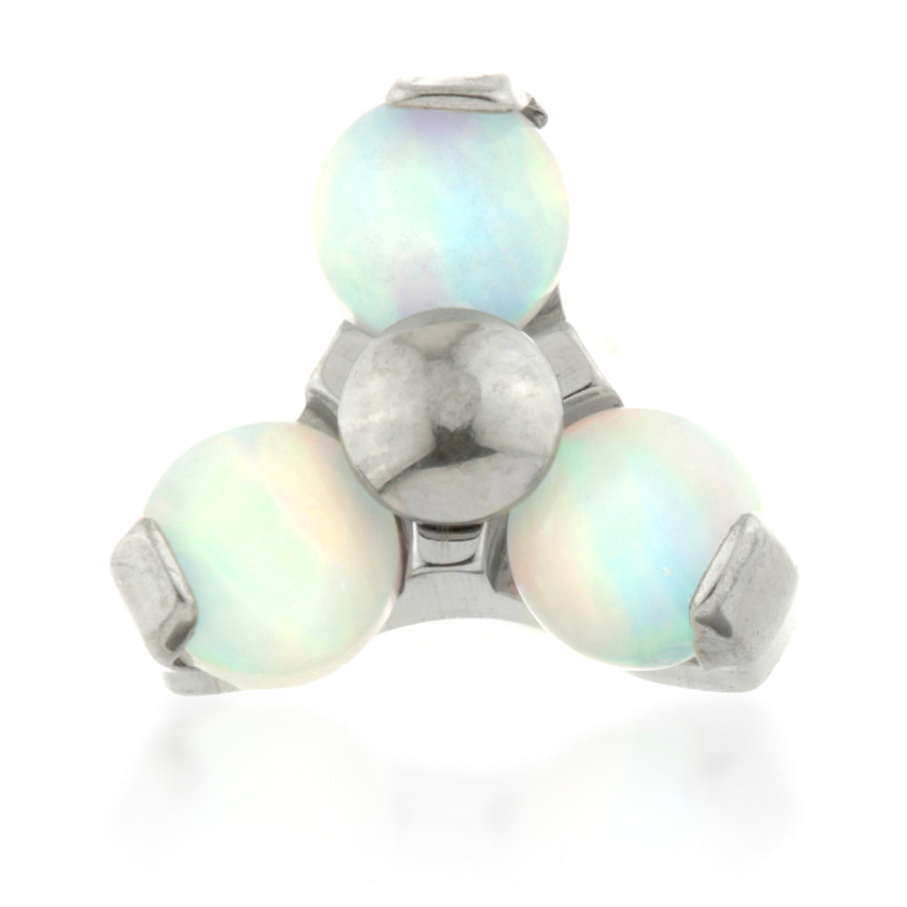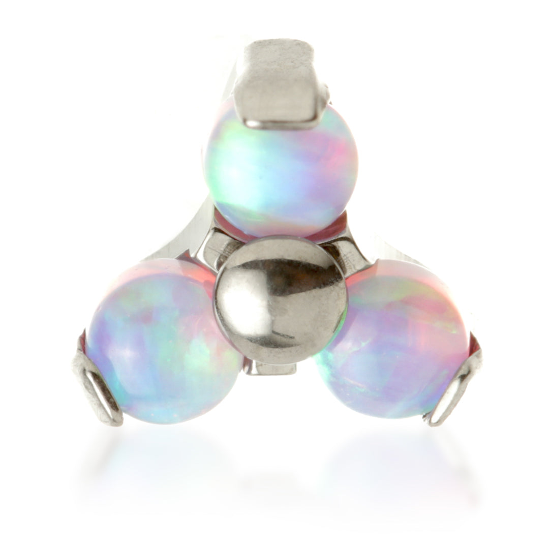 Titanium Internal Opal Trinity Attachment Gauge: 1.2mm (0.9mm thread) Sizes: Small = 4mm, Medium = 5mm Opal Colour: White Medical Grade Titanium 6Al-4VEli ASTM:F-136