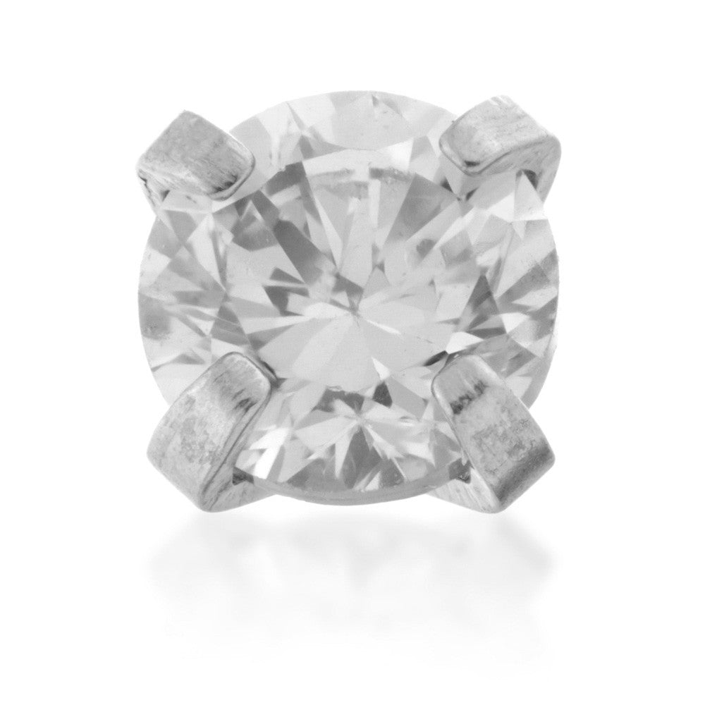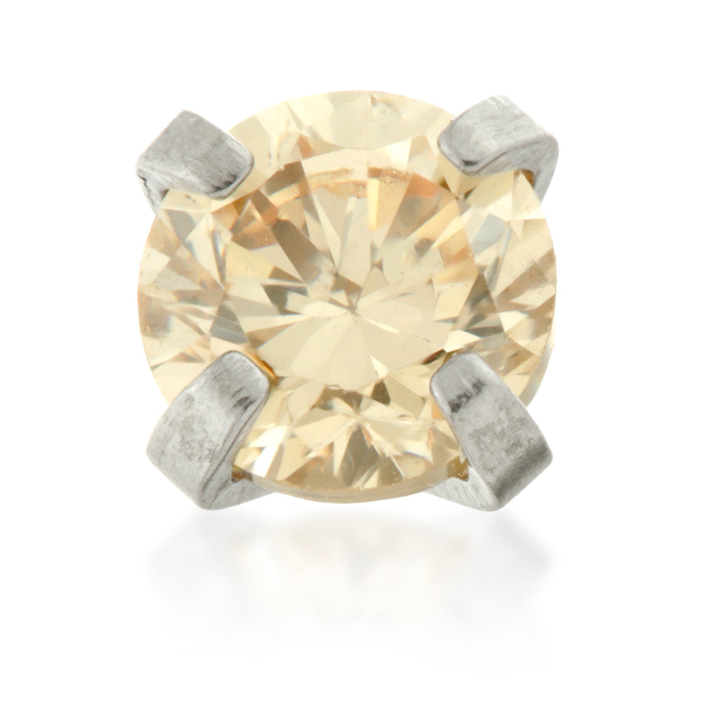 Titanium Prong Set Gem Gauge: 1.2mm (0.9mm thread) Gem Size: 2mm / 2.5mm / 3mm / 4mmGem Colours: Crystal, Amethyst, Aqua, Champagne, Emerald, Jet, Light Rose, Light Siam, Mint Titanium Colours Available Medical Grade Titanium 6Al-4VEli ASTM:F-136