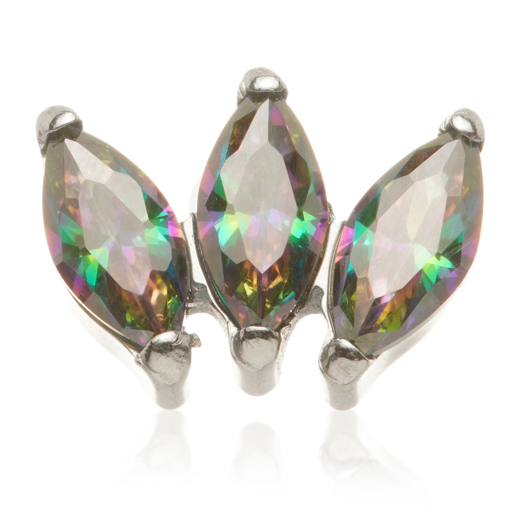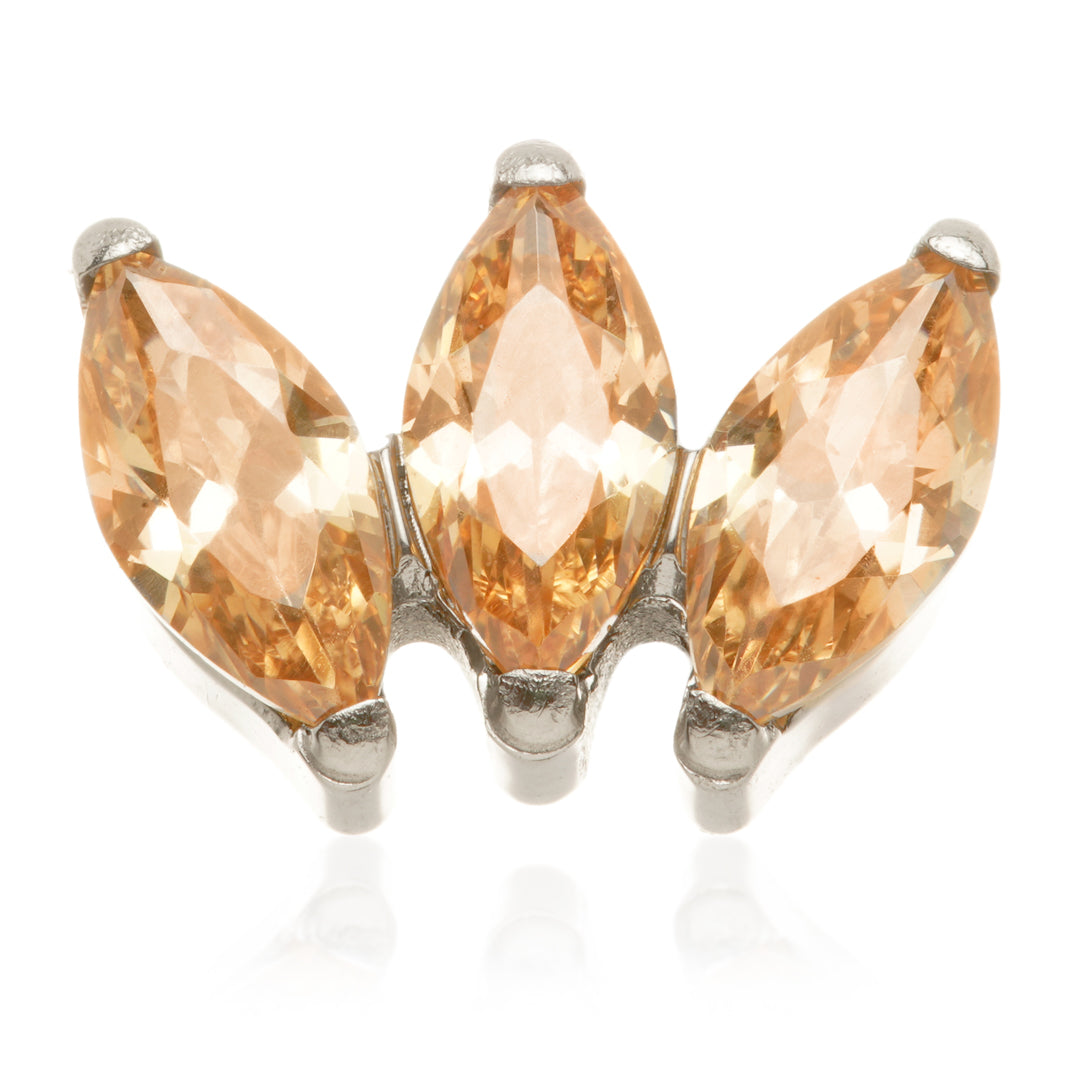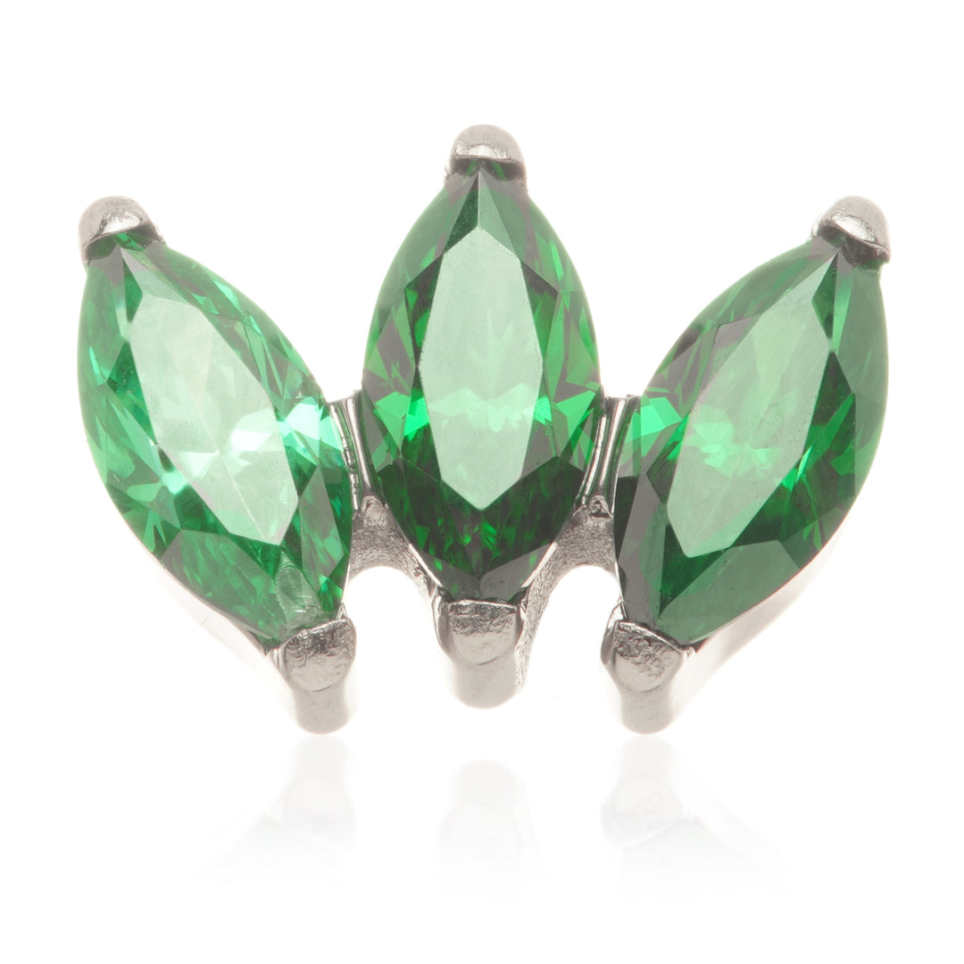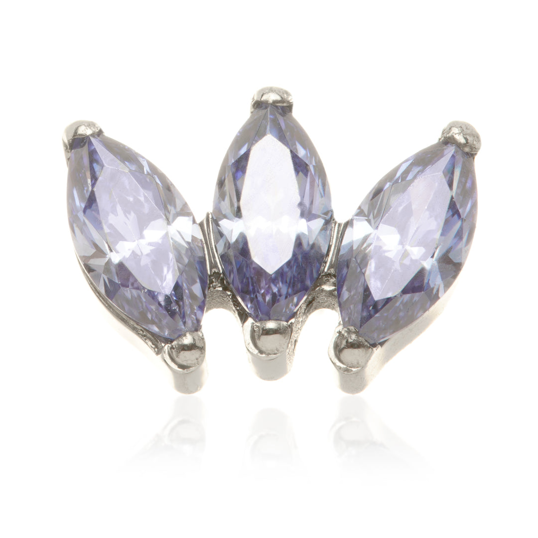 Titanium Internal Triple Gem Marquise Attachment Gauge: 1.2mm (0.9mm thread)Attachment Size: 7mm Gem Colours: AM/CH/CR/EM/GA/JT/LR/TZ/VM Medical Grade Titanium 6Al-4VEli ASTM:F-136
