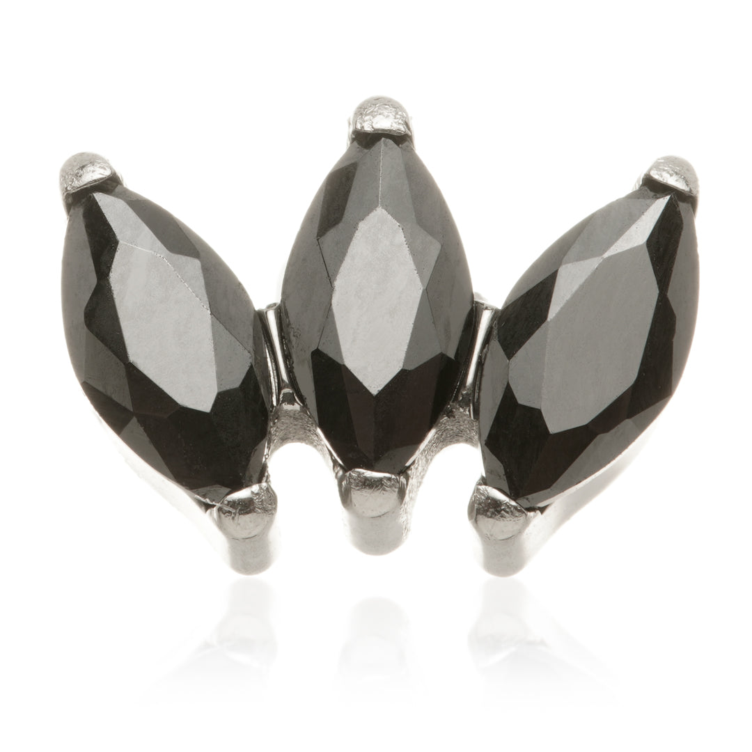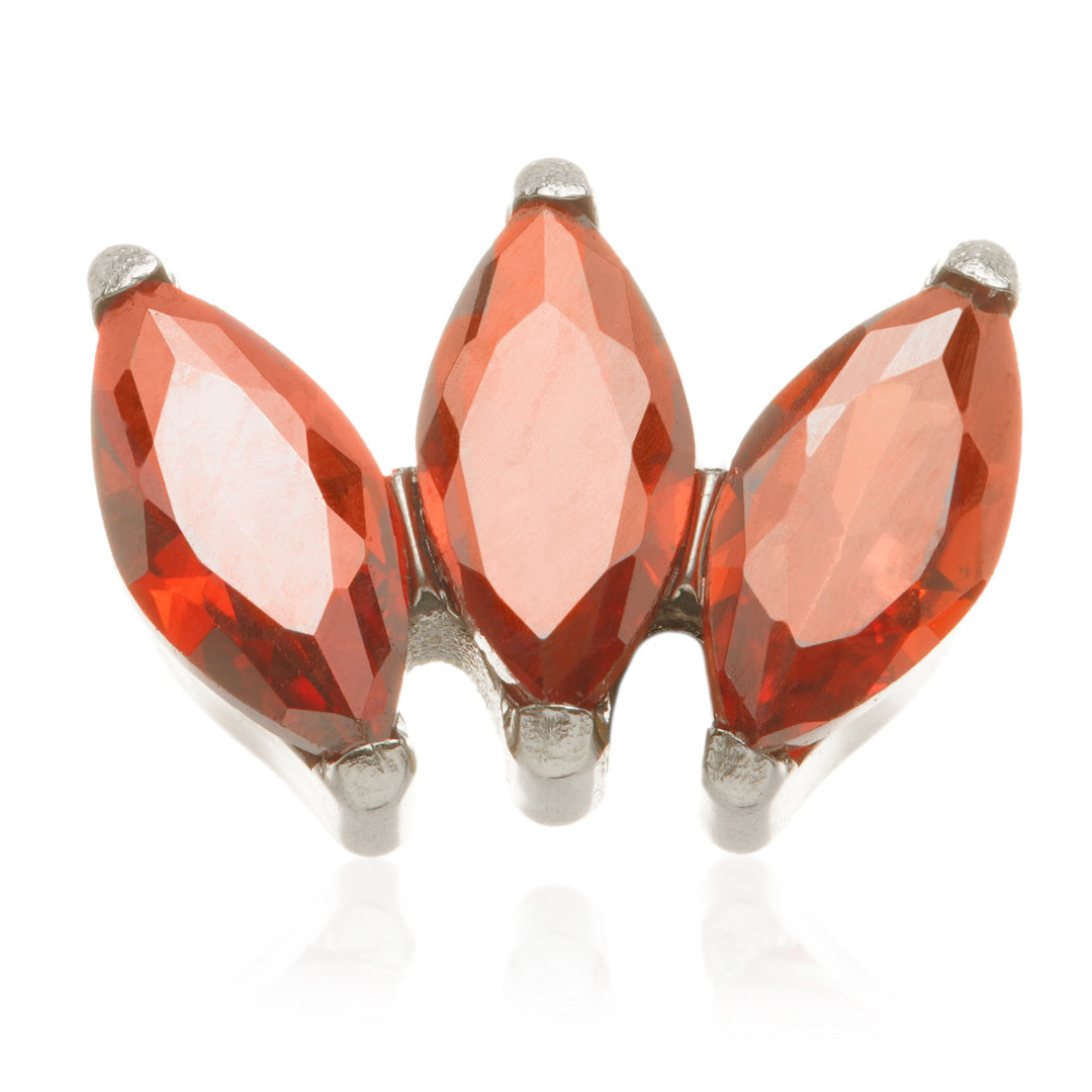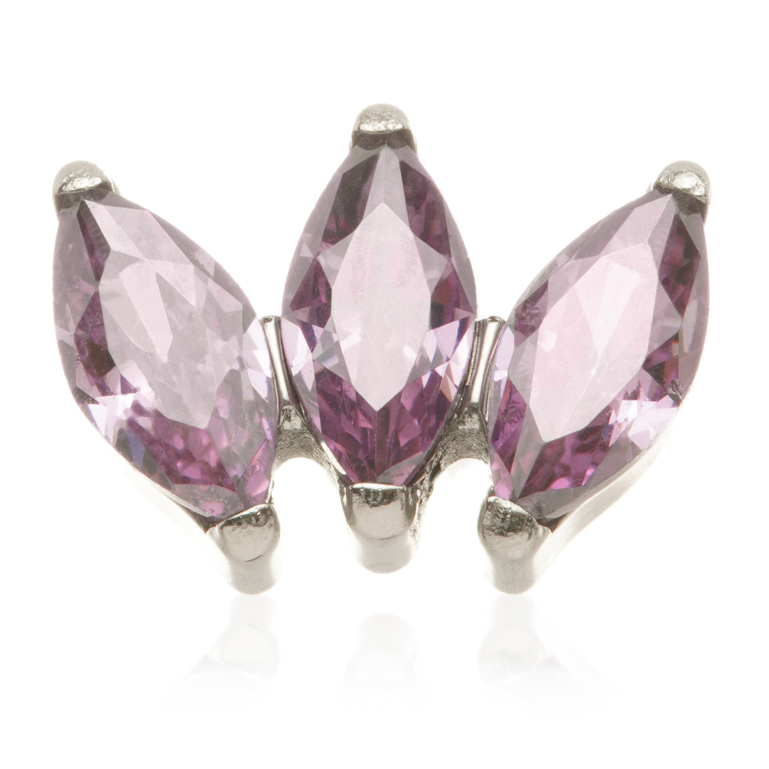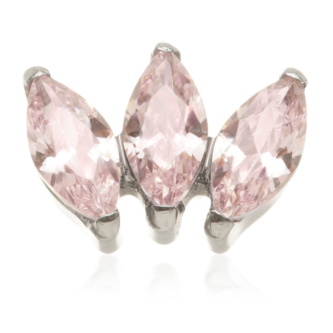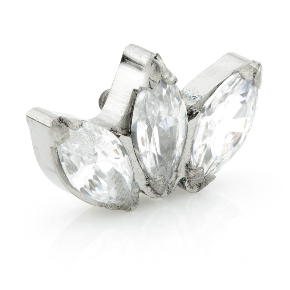 Titanium Internal Triple Gem Marquise Attachment Gauge: 1.2mm (0.9mm thread)Attachment Size: 7mm Gem Colours: AM/CH/CR/EM/GA/JT/LR/TZ/VM Medical Grade Titanium 6Al-4VEli ASTM:F-136