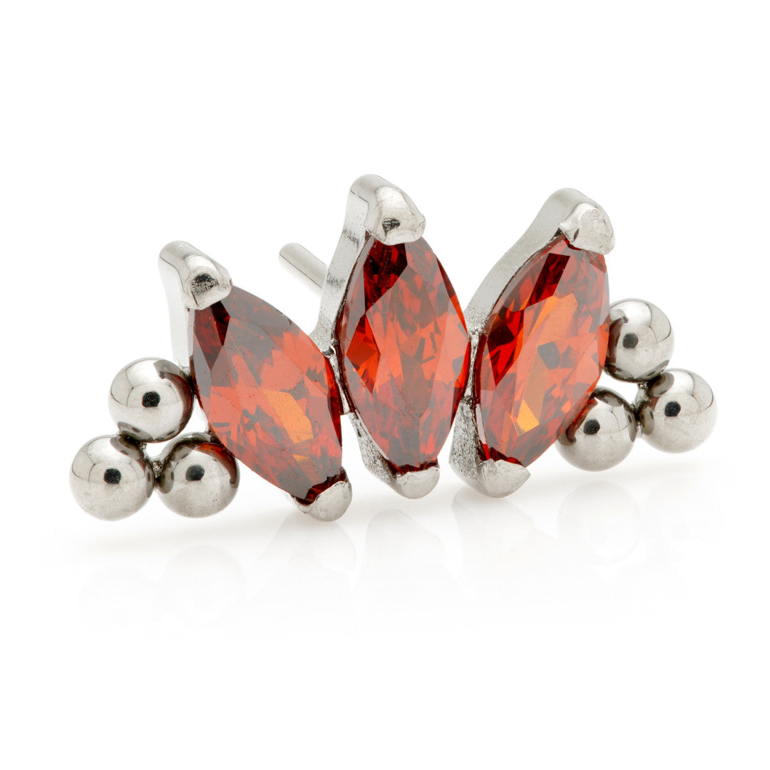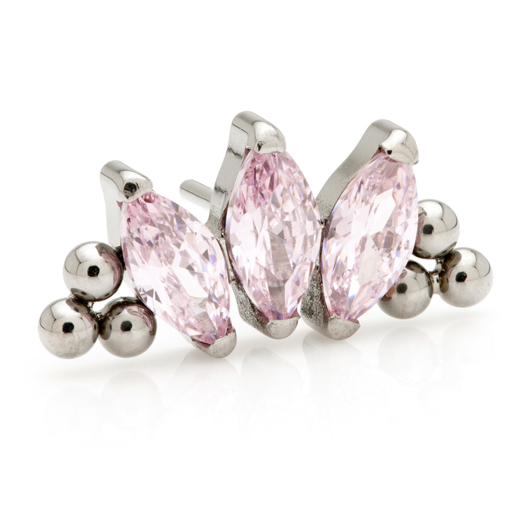 Titanium Threadless Triple Marquise Beaded Attachment Attachment Size: 10mm Gem Colour: AM/CH/CR/EM/GA/JT/LR/TZ/VM CZ Gem Stones Medical Grade Titanium 6Al-4VEli ASTM:F-136