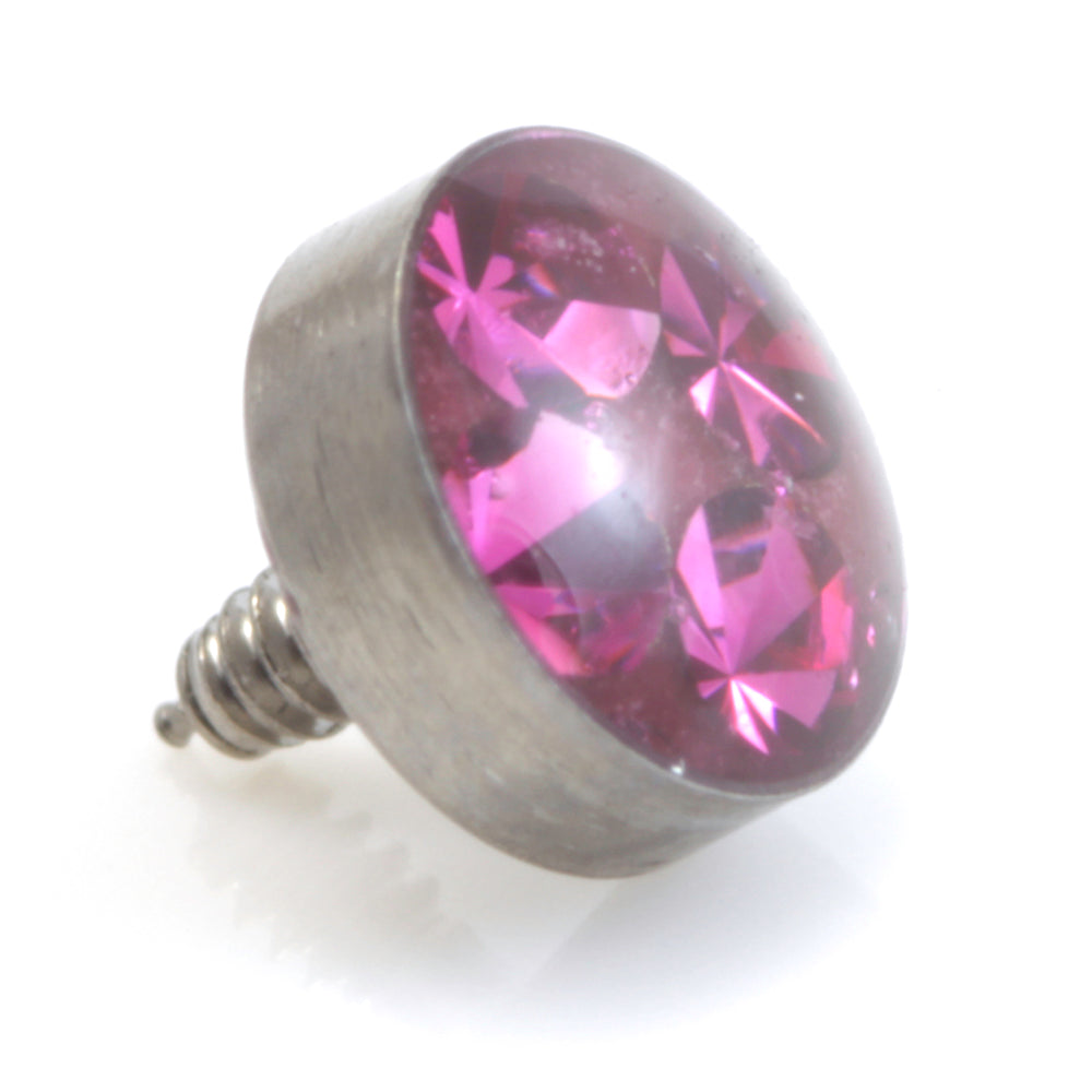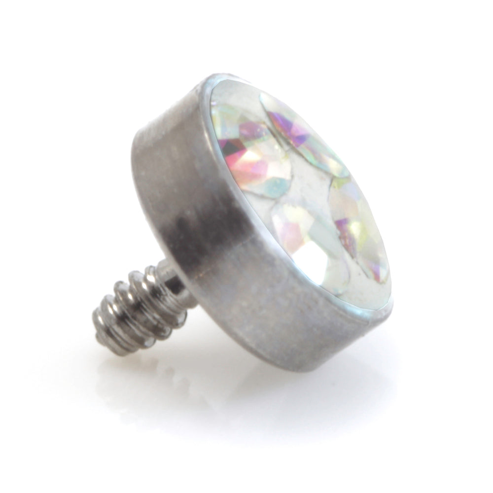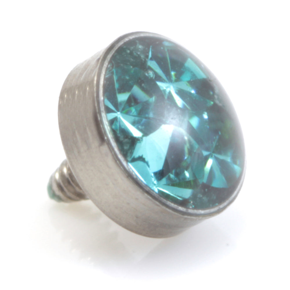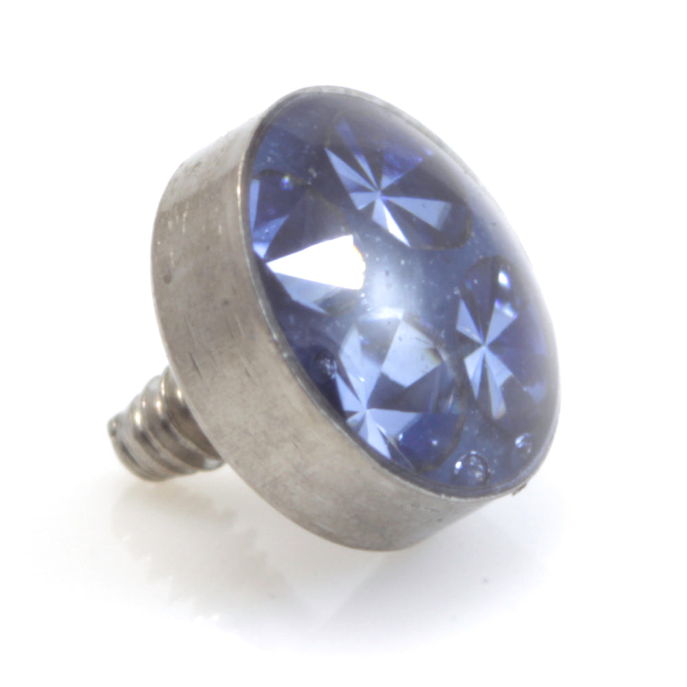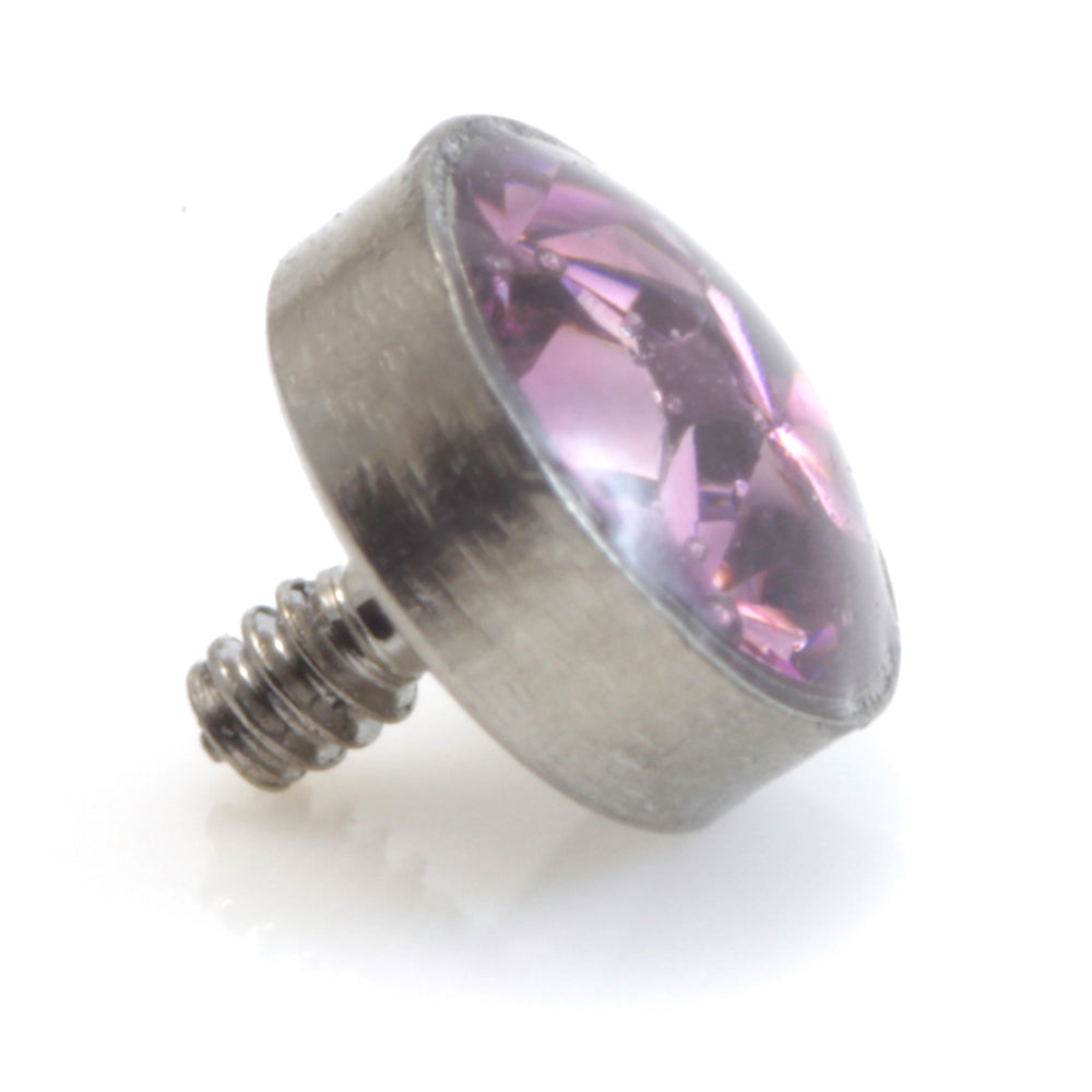 Internal 0.8mm Thread Titanium Gem Disk to fit onto 1.2mm internal thread dermal anchor base Gem Disk Size: 3mm Gem Colours: Crystal, AB, Aqua, Amethyst, BZ, Fuchsia, Lt Siam, Lt Rose, Sapphire, Peridot Gauge: 1.2mm (thread 0.8mm)