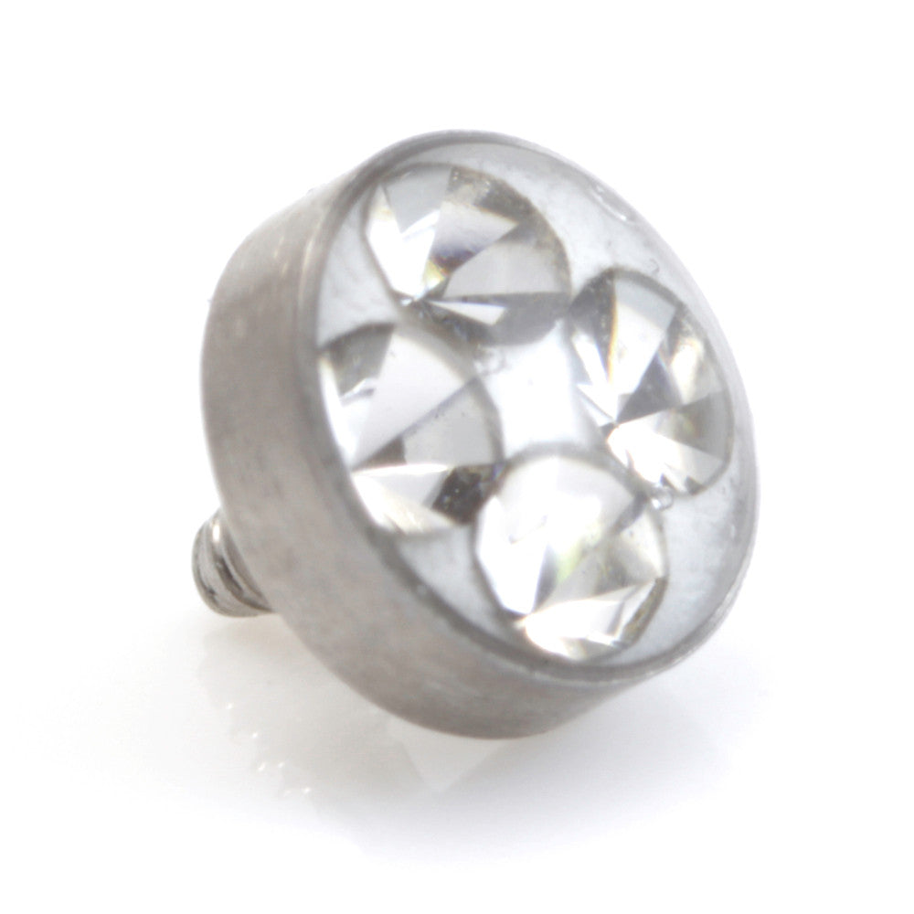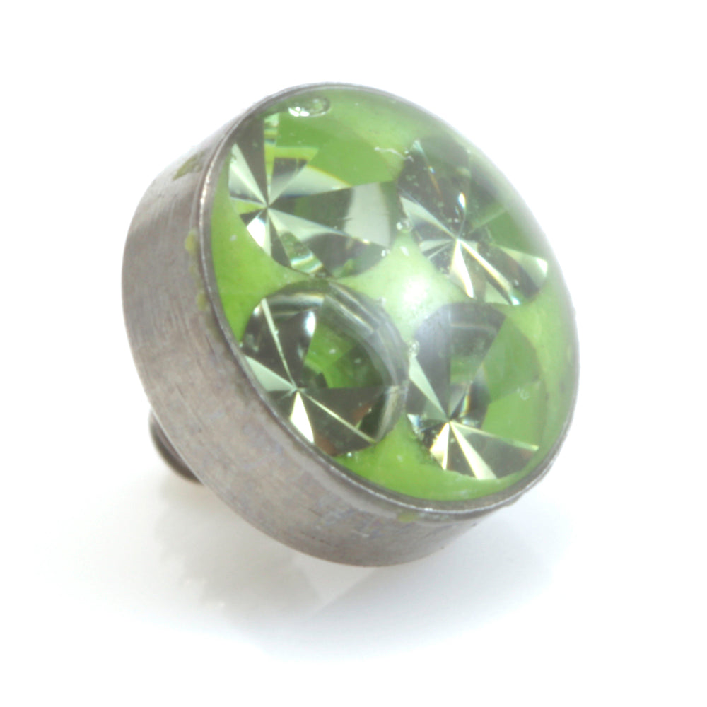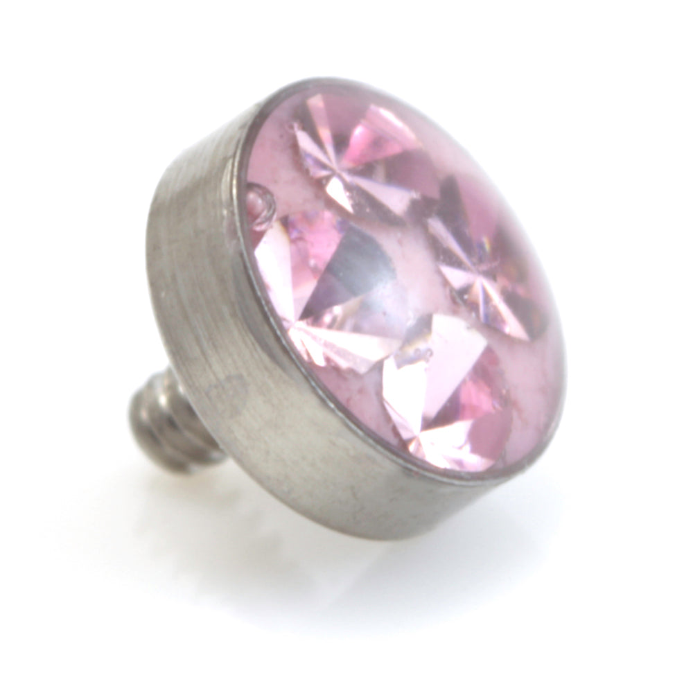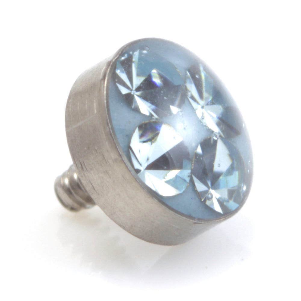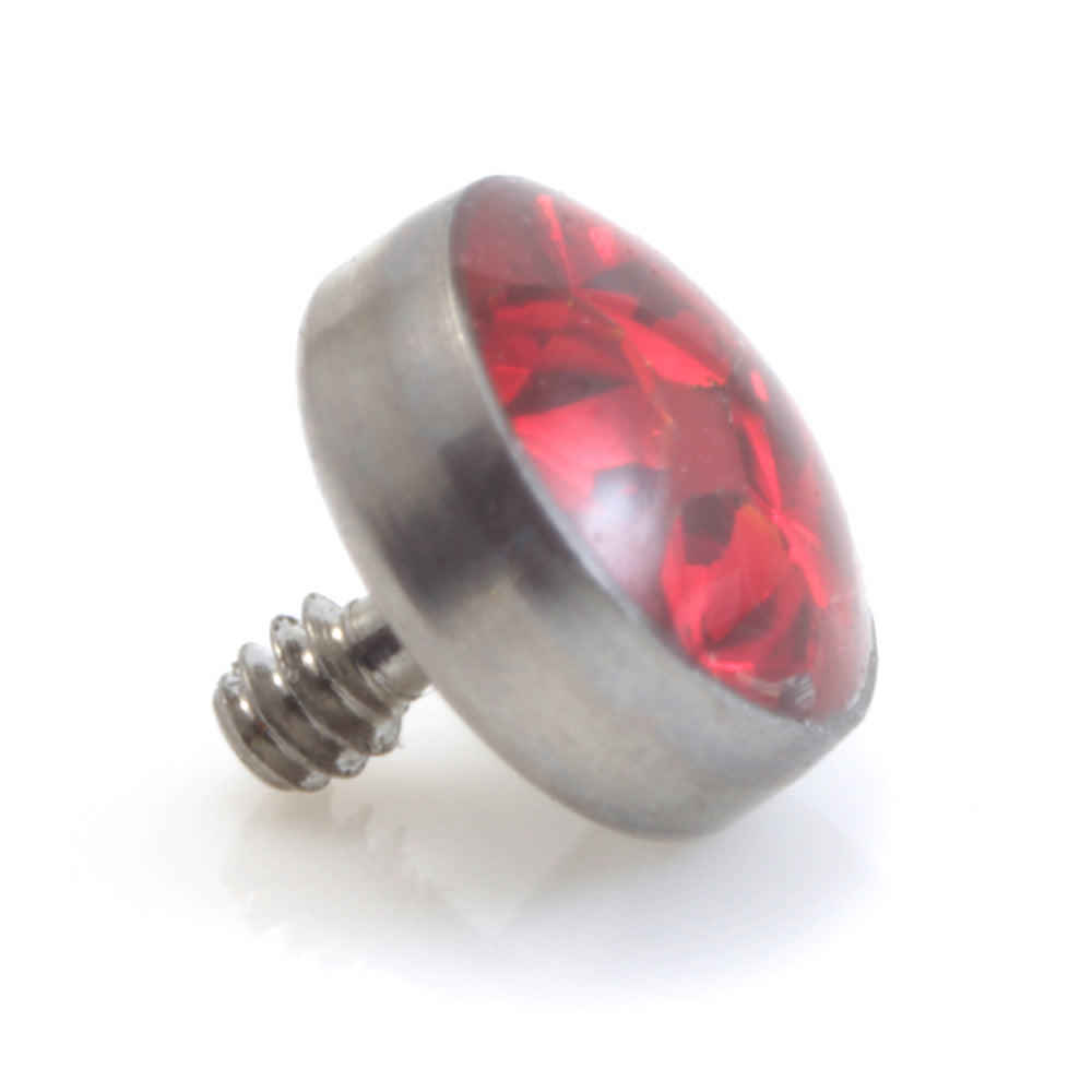 Internal 0.8mm Thread Titanium Gem Disk to fit onto 1.2mm internal thread dermal anchor base Gem Disk Size: 3mm Gem Colours: Crystal, AB, Aqua, Amethyst, BZ, Fuchsia, Lt Siam, Lt Rose, Sapphire, Peridot Gauge: 1.2mm (thread 0.8mm)