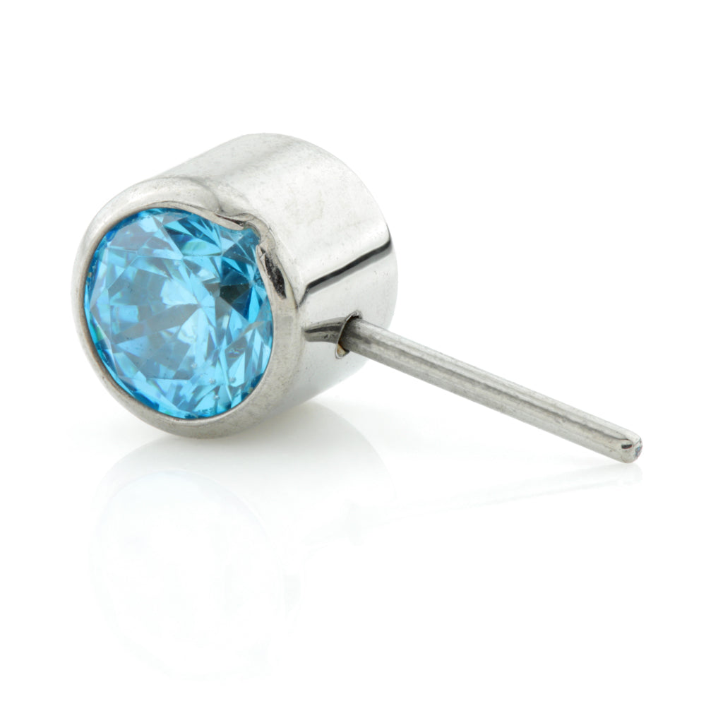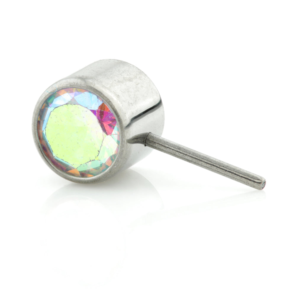 Titanium Threadless Forward Facing Gem Disk Gauge: 1.2mm Disk Size: 4mm Gem Colours: AB / AQ / CR / PK Medical Grade Titanium 6Al-4VEli ASTM:F-136