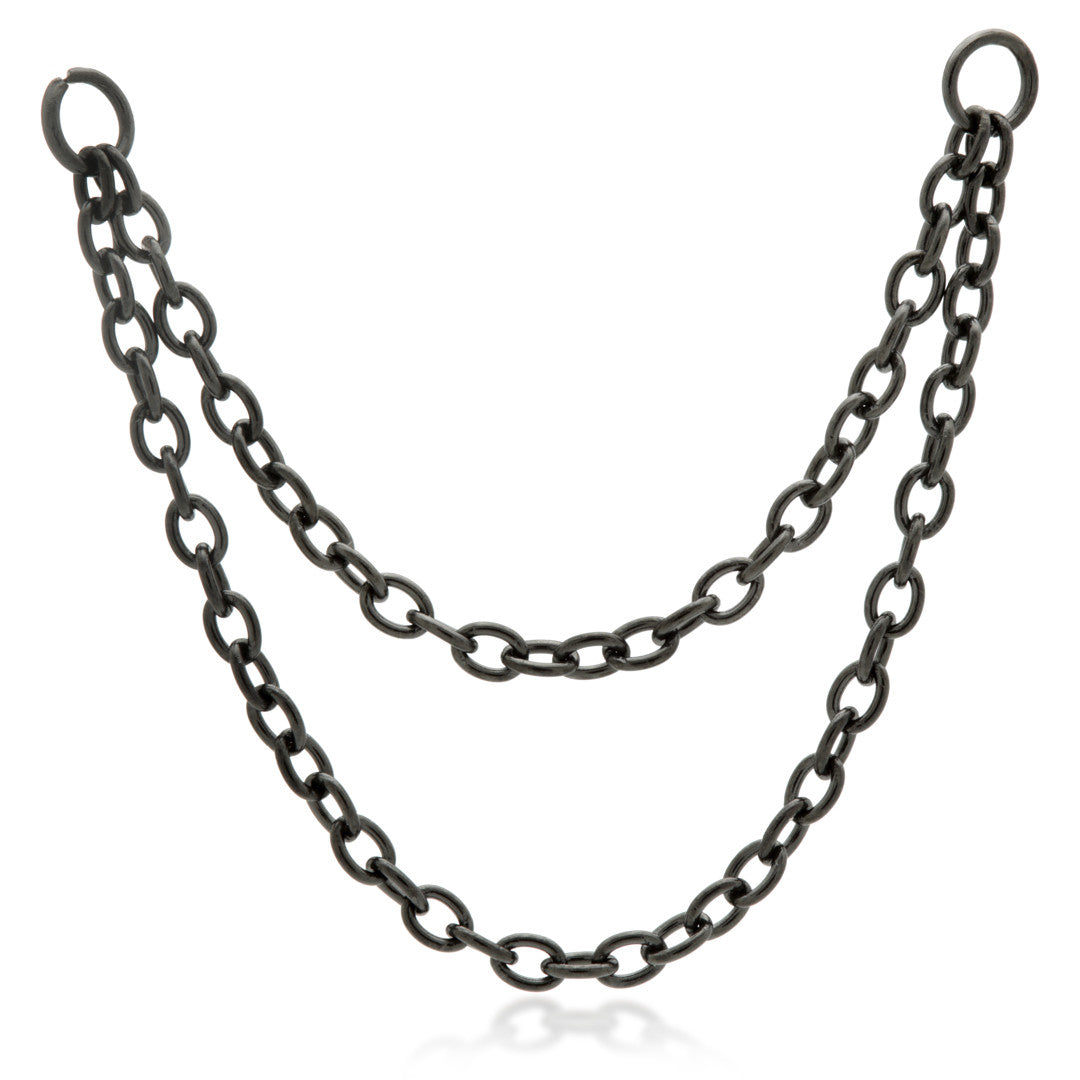 Black Steel Double Hanging Chain Charm Chain Length: 16+24/20+28/25+34/32+48/38+52mm O-ring Inner Diameter: 2mm 316L Surgical Steel