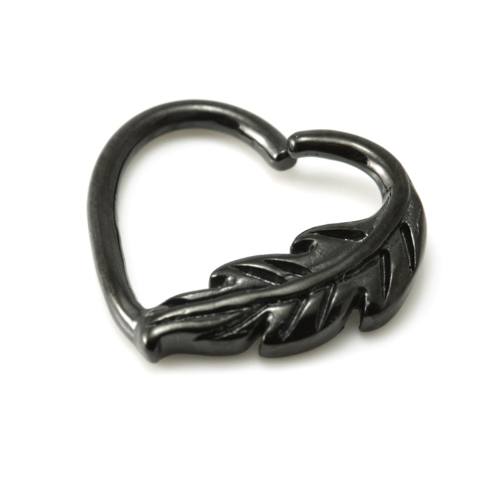 Surgical Steel on PVD Leaf Black Heart Ring Ideal for Helix, Tragus, etc. 1.2mm x 10mm Right or Left