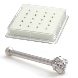 9ct White Gold with Crystal Gems - 1.5mm Head Box of 20 prong set studs Gauge: 0.8mm