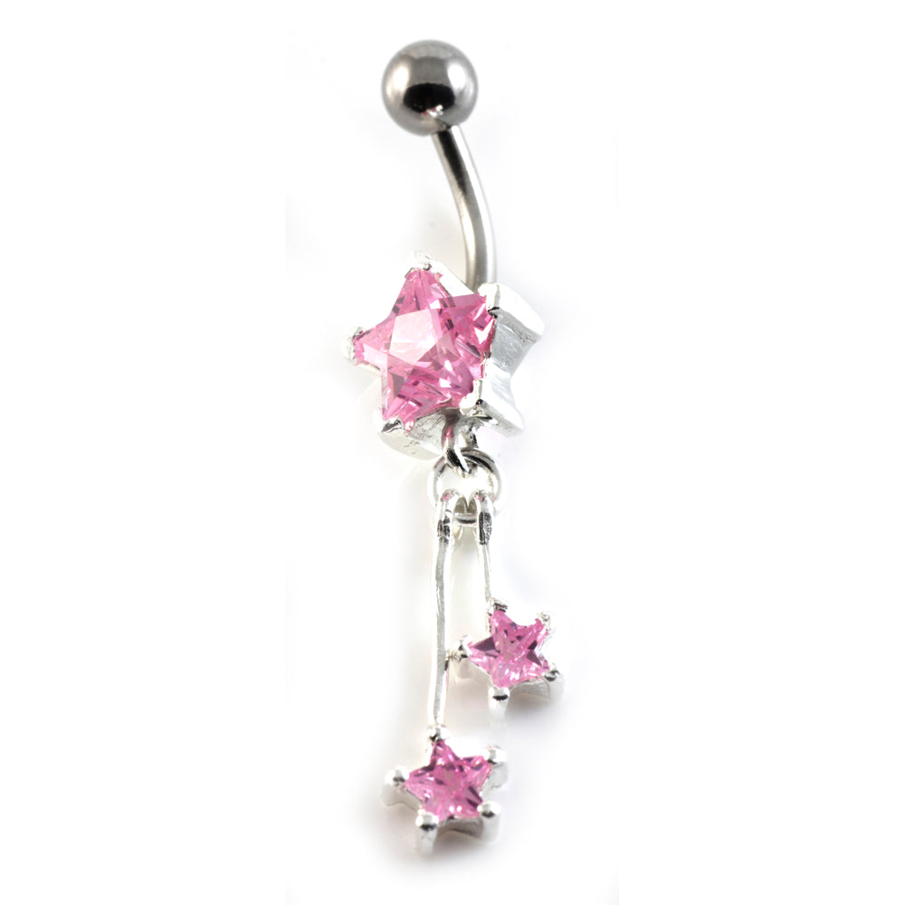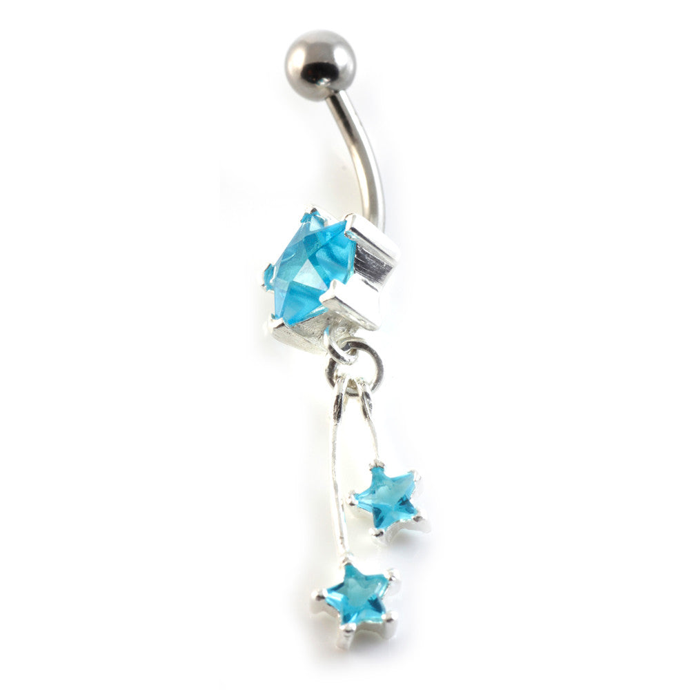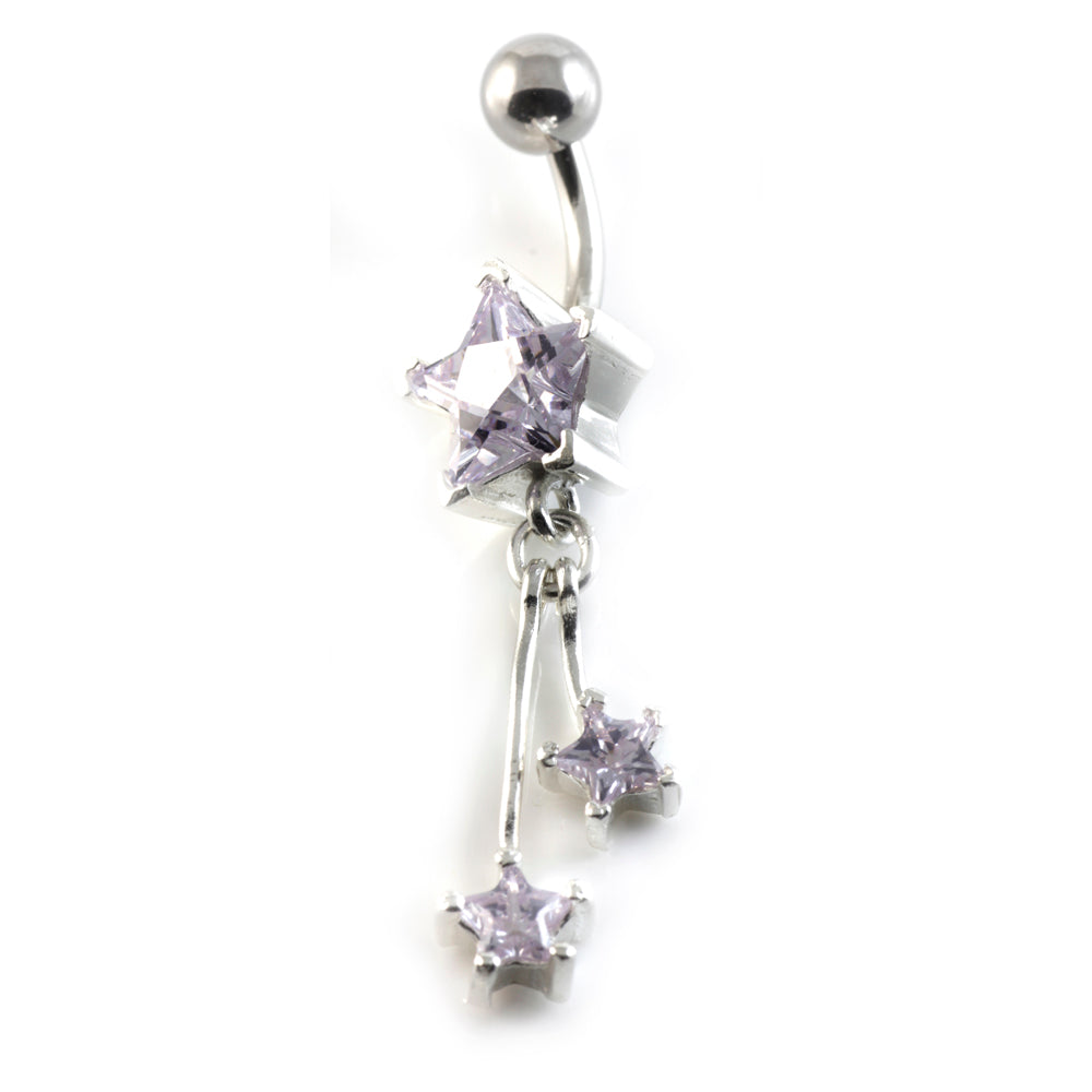 Silver Set Gems 316L Belly BarGauge: 1.6mmSizes: 8mm, 10mm and 12mmGem Colours: Aqua / Lilac / Rose