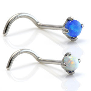 Synthetic Opal Prong Set Steel Curl Nose Stud Gauge: 0.8mm Colour: White, Pink or Blue Gem: 2mm or 3mm