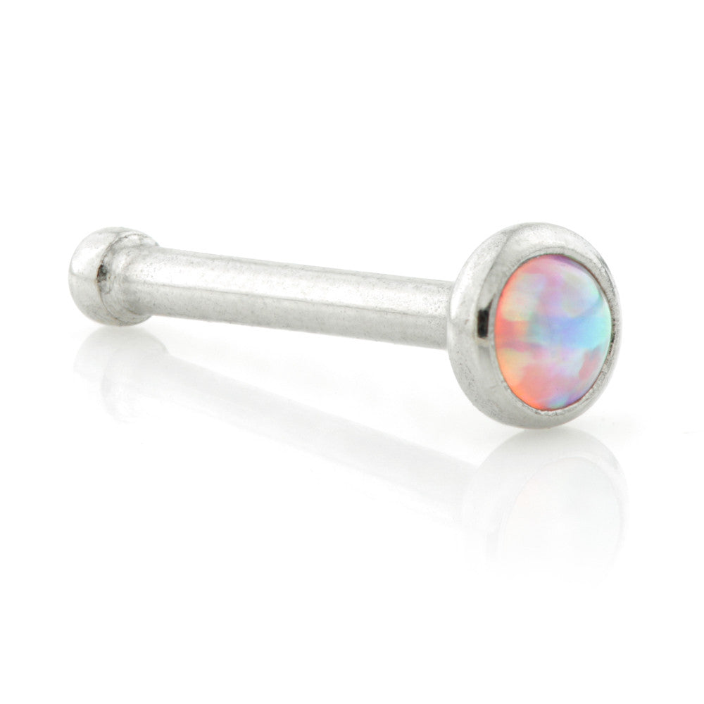 Synthetic Opal Round Set Steel Pin Nose Stud Gauge: 0.8mm Colour: White, Pink or Blue Disk Size: 2mm