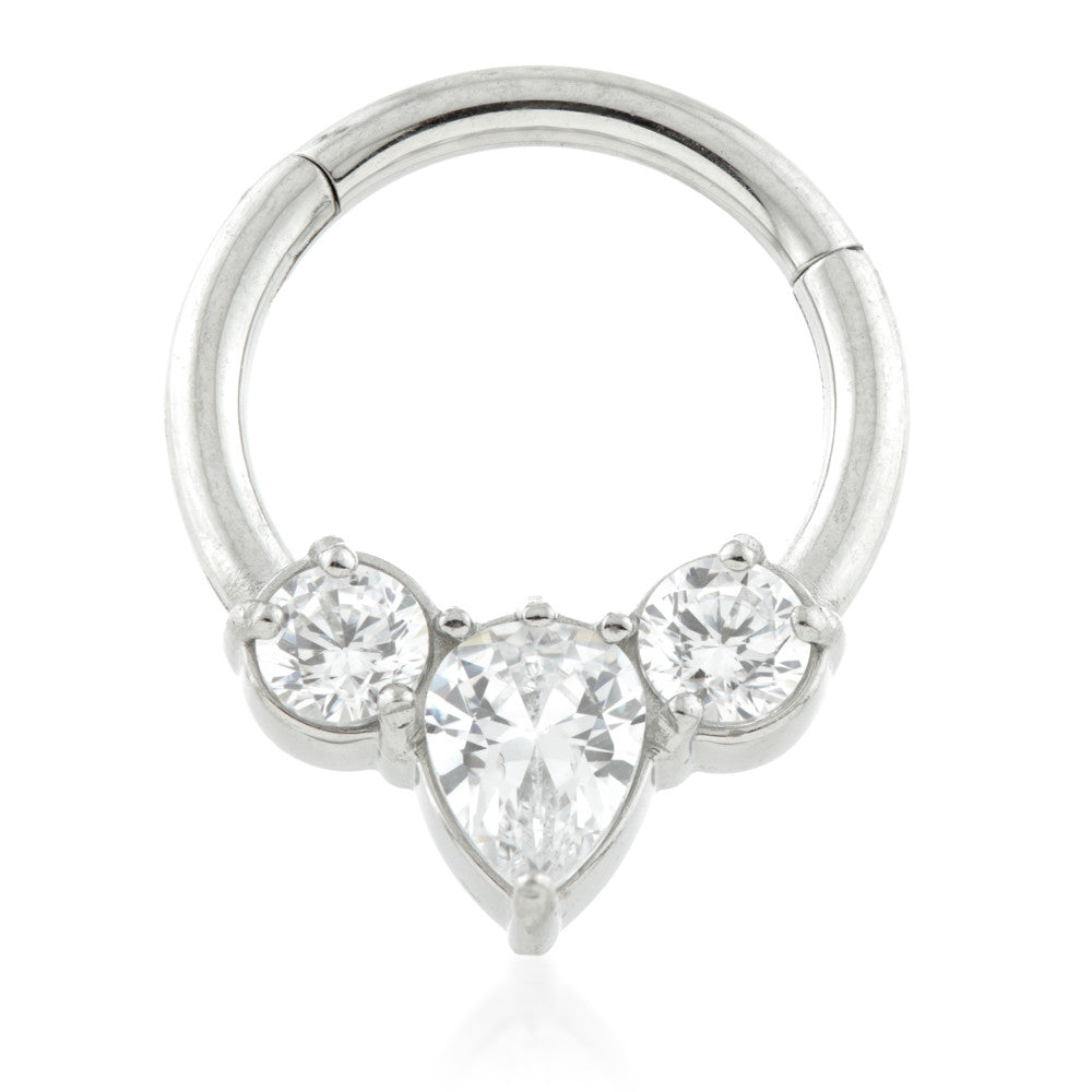 Steel 3 Gem Tear Hinged Micro Ring