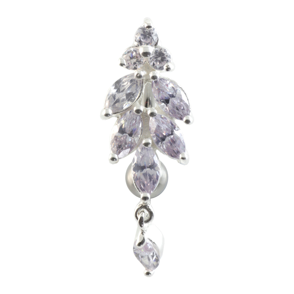 Silver Set Gems 316L Belly Bar Gauge: 1.6mm Sizes: 8mm, 10mm, 12mm Gem Colours: Crystal, Aqua, Rose, Lilac