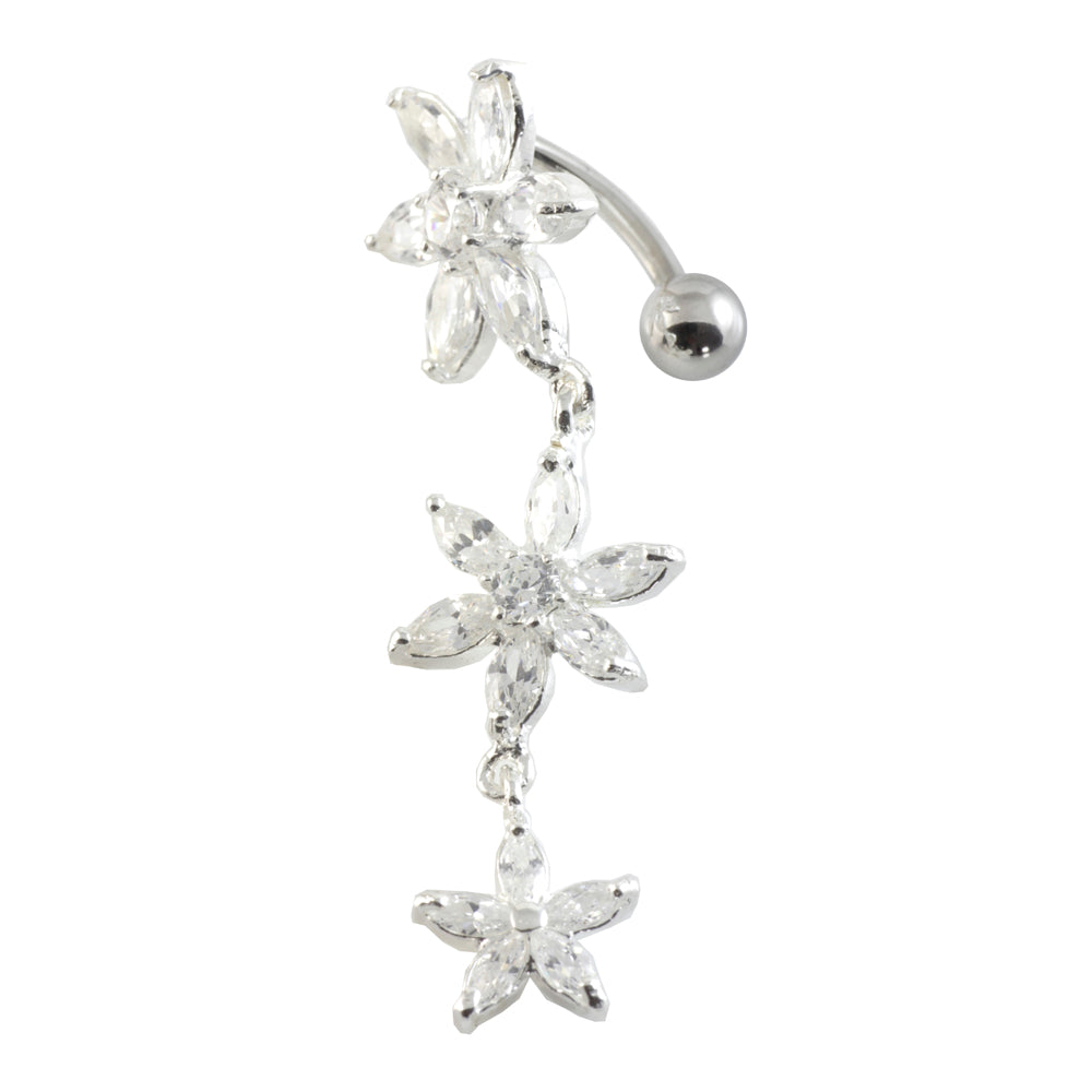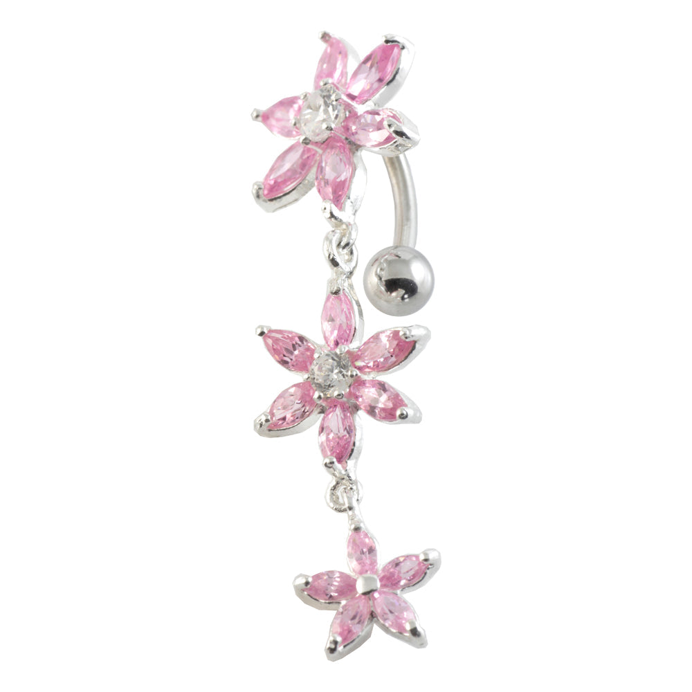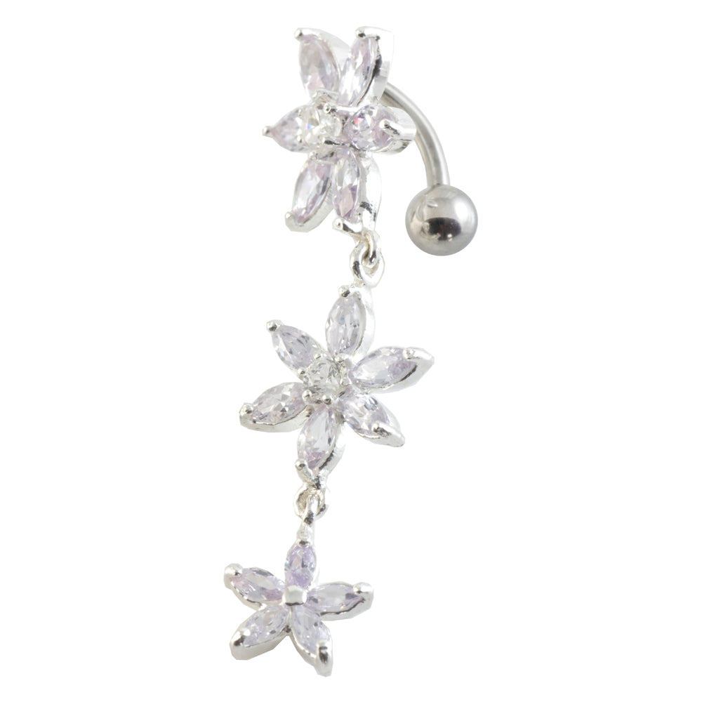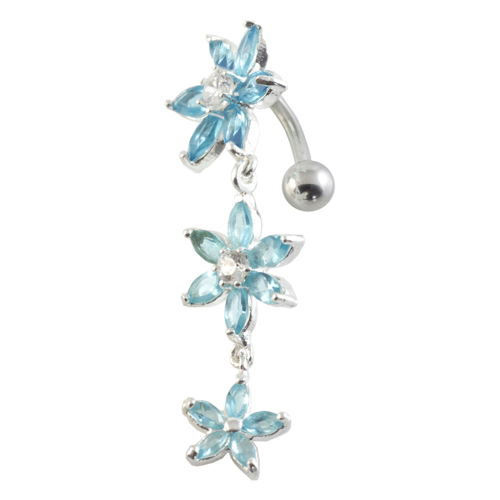 Silver Set Gems 316L Belly Bar Gauge: 1.6mm Sizes: 8mm, 10mm, 12mm Gem Colours: Crystal, Aqua, Rose, Lilac