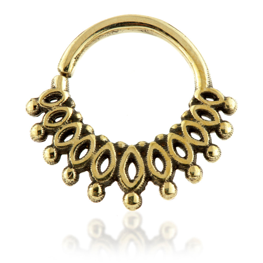 Tribal Petal Brass Open Ring Gauge: 1mm / 18g Internal Diameter: 6mm, 8mm (approx) Not for initial piercing, only to be worn in healed piercings