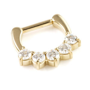 Zircon Gold Steel Jewelled Daith Ring