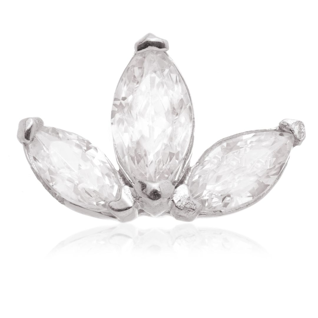 TISH LYON® 14ct Internal Gold Fleur-De-Lis Gem Attachment Gauge: 1.2mm (0.9mm Thread) Attachment Size: 6*8mm Gold Colour: Yellow / White Gem Colour: Crystal CZ Gem Stones 316L Surgical Steel Pin Suitable for initial piercing