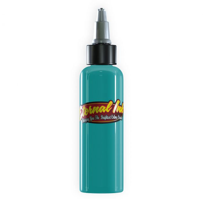 1oz bottle - A vibrant turquoise that sits between Tropical Teal and Turquoise. Part of Eternal Ink's M Series. Vegan-friendly, non-toxic, organic ink - supplied in a medical grade sealed bottle to ensure longevity. Eternal Ink is made of high quality natural pigments, deionised water and hamamelis water.