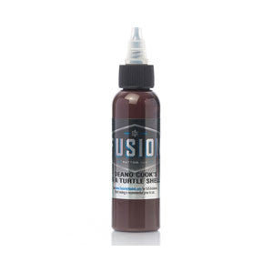 1oz bottle of Fusion tattoo ink. Organic, non-toxic and vegan safe. Part of Deano Cook's Signature Set. Really rich deep brown tone with a hint of purple.