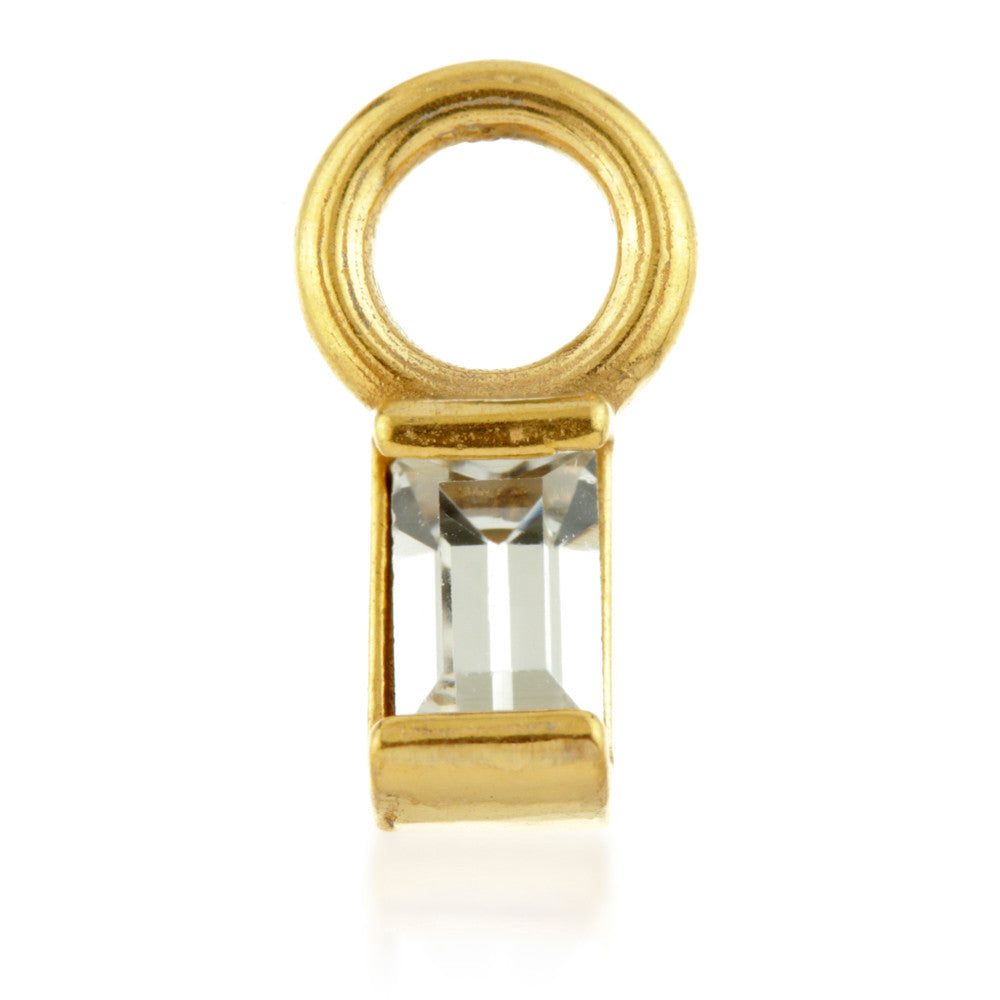 Gold PVD on Steel Crystal Rectangle (Emerald Cut) Charm Attachment Will fit on Hinge Segment Ring or BCR Size: 5mm x 3mm
