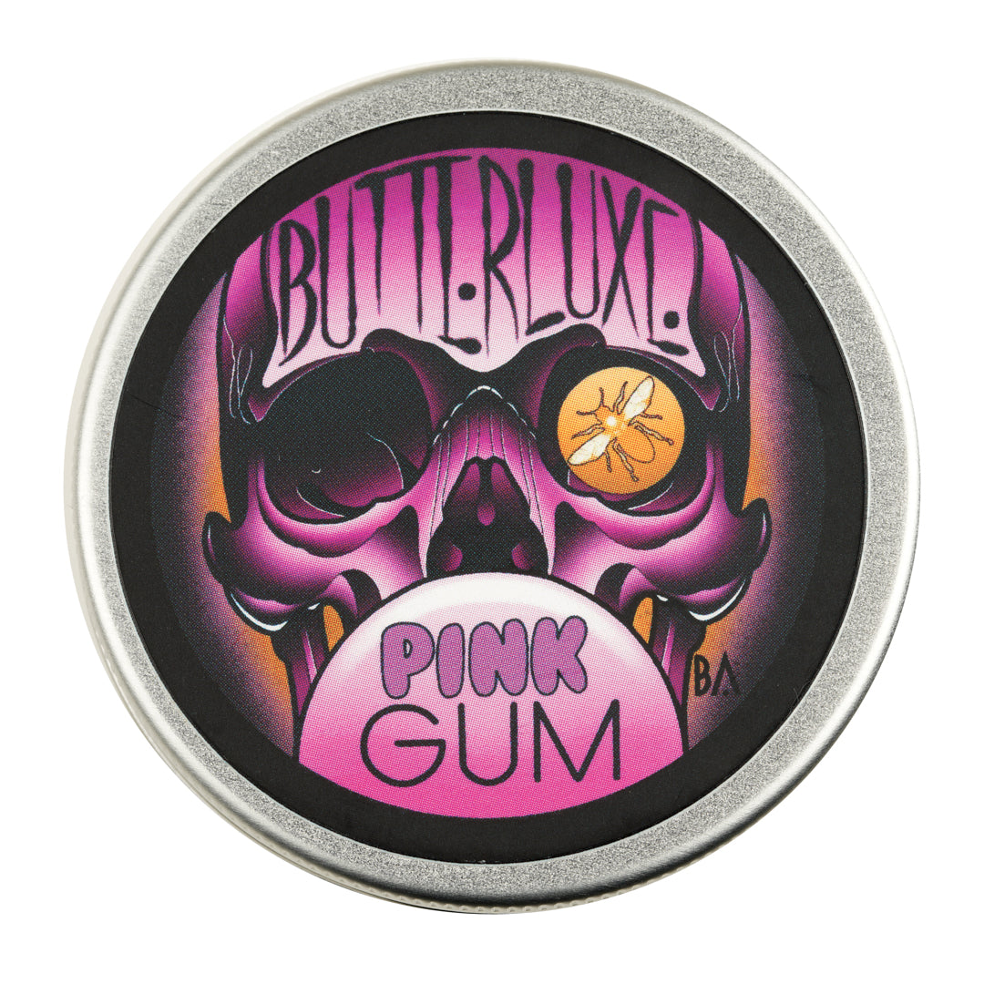 100% NATURAL 100% VEGAN Pink Gum Butterluxe Balm is a Special Edition product. Artwork design and flavour choice by our very own Sponsored Artist Jamie Lee Knott of Dark Horse Tattoo Collective. With all the greatness of our original butters. Butterluxe Balm is a new, thicker consistency, with added flavours for you to try. Designed to be used during the tattoo process and for all your aftercare needs! Can be used as an all round moisturiser, to keep skin nourished and tattoo vibrancy. Luxury butter packed with anti-inflammatory and anti-bacterial properties, perfect for the healing process. For use during and after the tattoo process. Also beneficial for healed tattoos, keeping your skin nourished and preserving tattoo vibrancy. Store in a cool dry place, keep tin out of direct sunlight. INGREDIENTS: Calendula Oil, Hemp Seed Oil, Vitamin E Oil, Shea Butter, Coconut Oil, Mango Butter and Essential Oils.