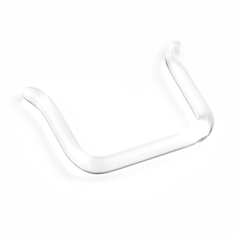 Clear Glass Septum Keeper Gauge: 1.6mm Colour: Clear Inner Length - 11mm / Feet Length - 10mm These items are fragile - do not force or drop