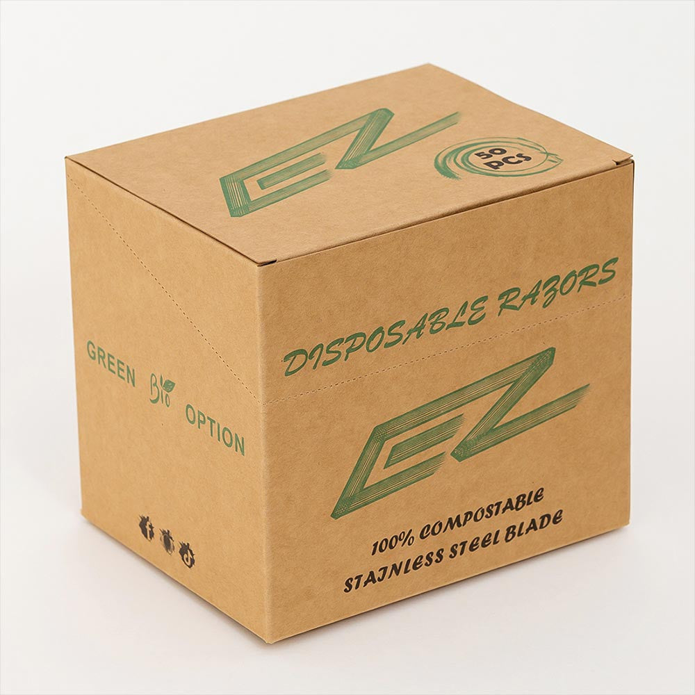 Made of compostable materials,It highly-biodegradable and recyclable, safe for people and the environment.Helps maintain a safe, Hygienic work environment. Twin Sweden stainless steel blade,with coating technologyWith wheat straw cap to protect bladeRazor handles made from wheat straw. Box is 100% compostable.Box of 50pcs