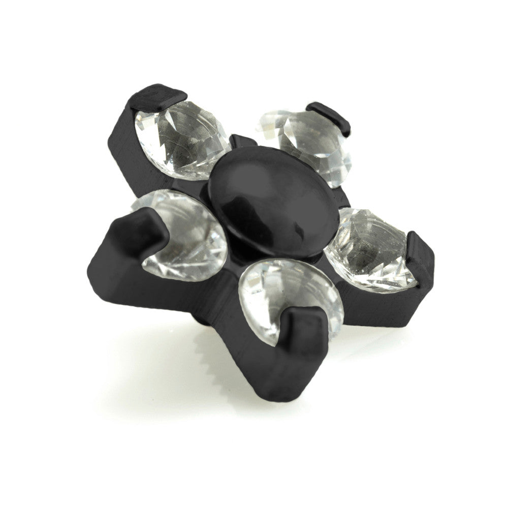Black PVD Titanium Flower with Crystal Gems - 5 Petal Flower Gauge 1.6mm with 1.2mm thread