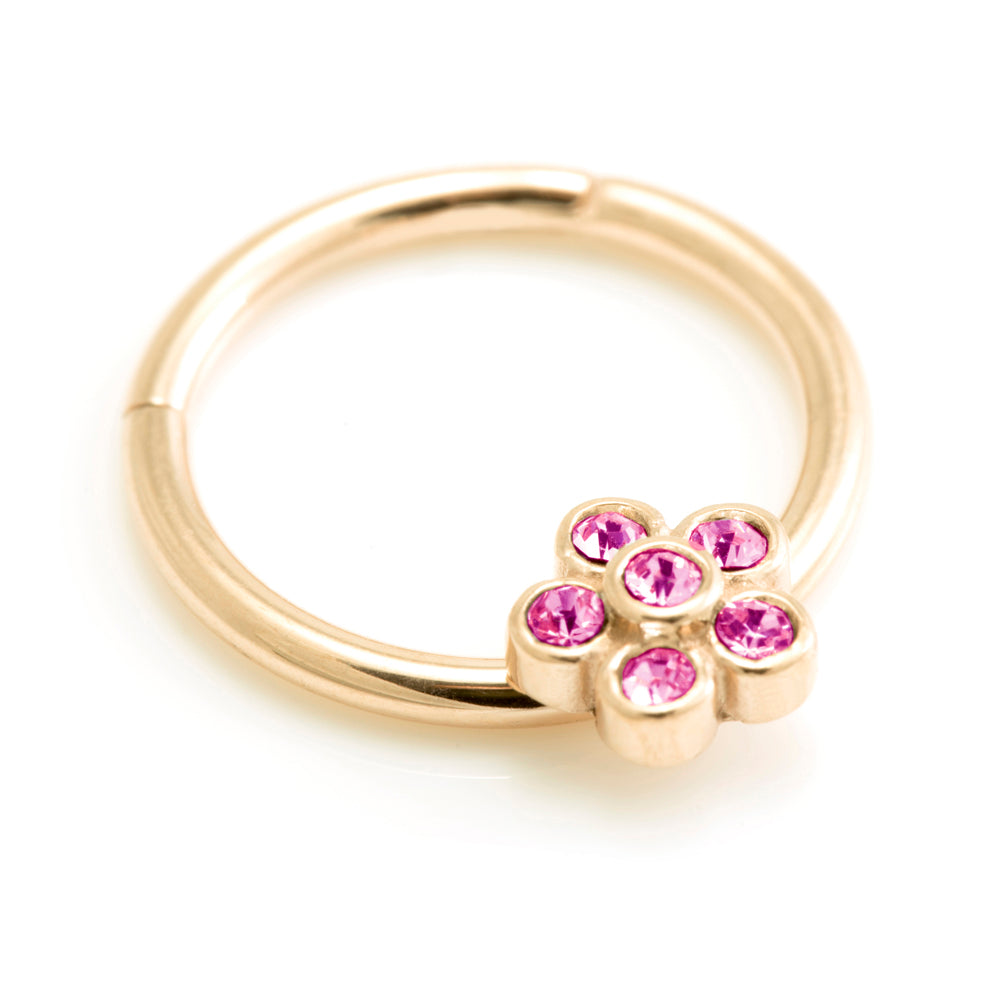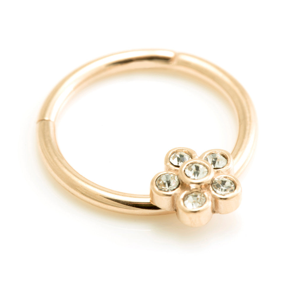 Rose Gold Steel Flower Gems Hinged Ring - RGMRING12B