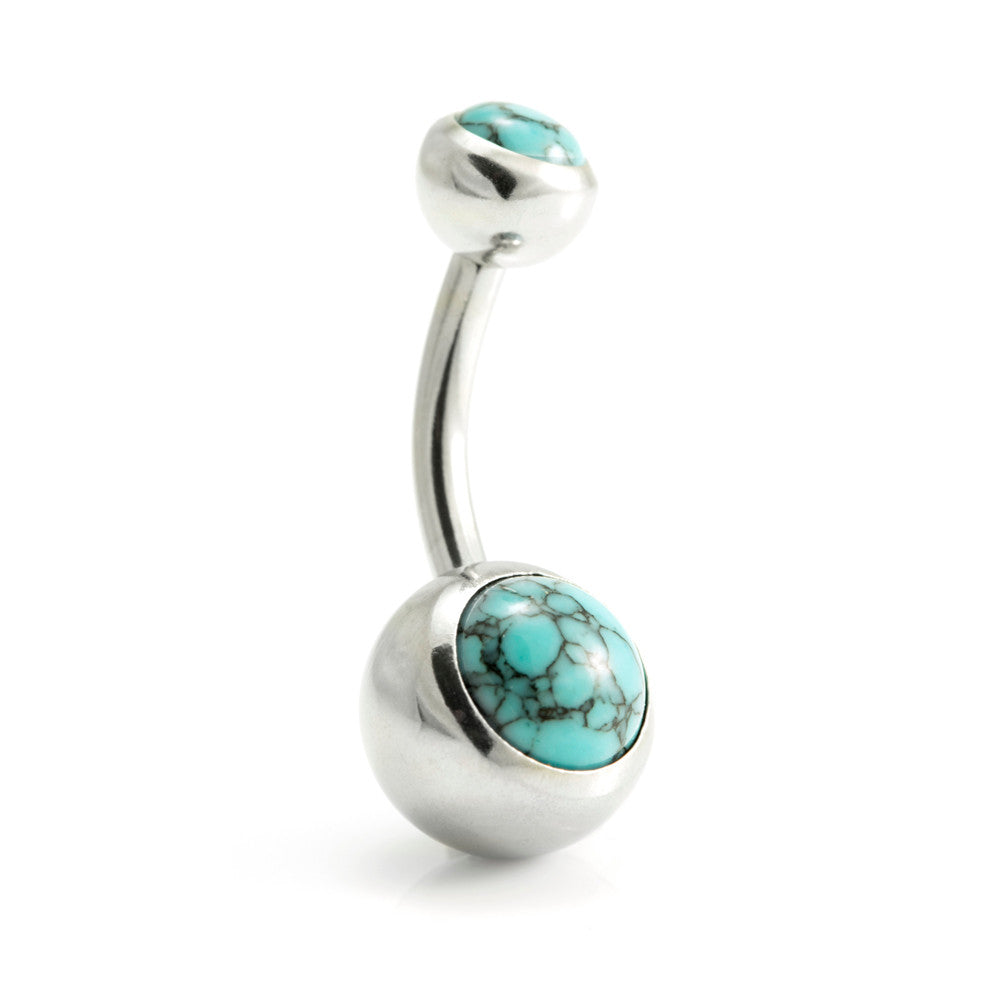 Steel External Thread Double Jewelled Navel Bar -1.6-8-Turquoise