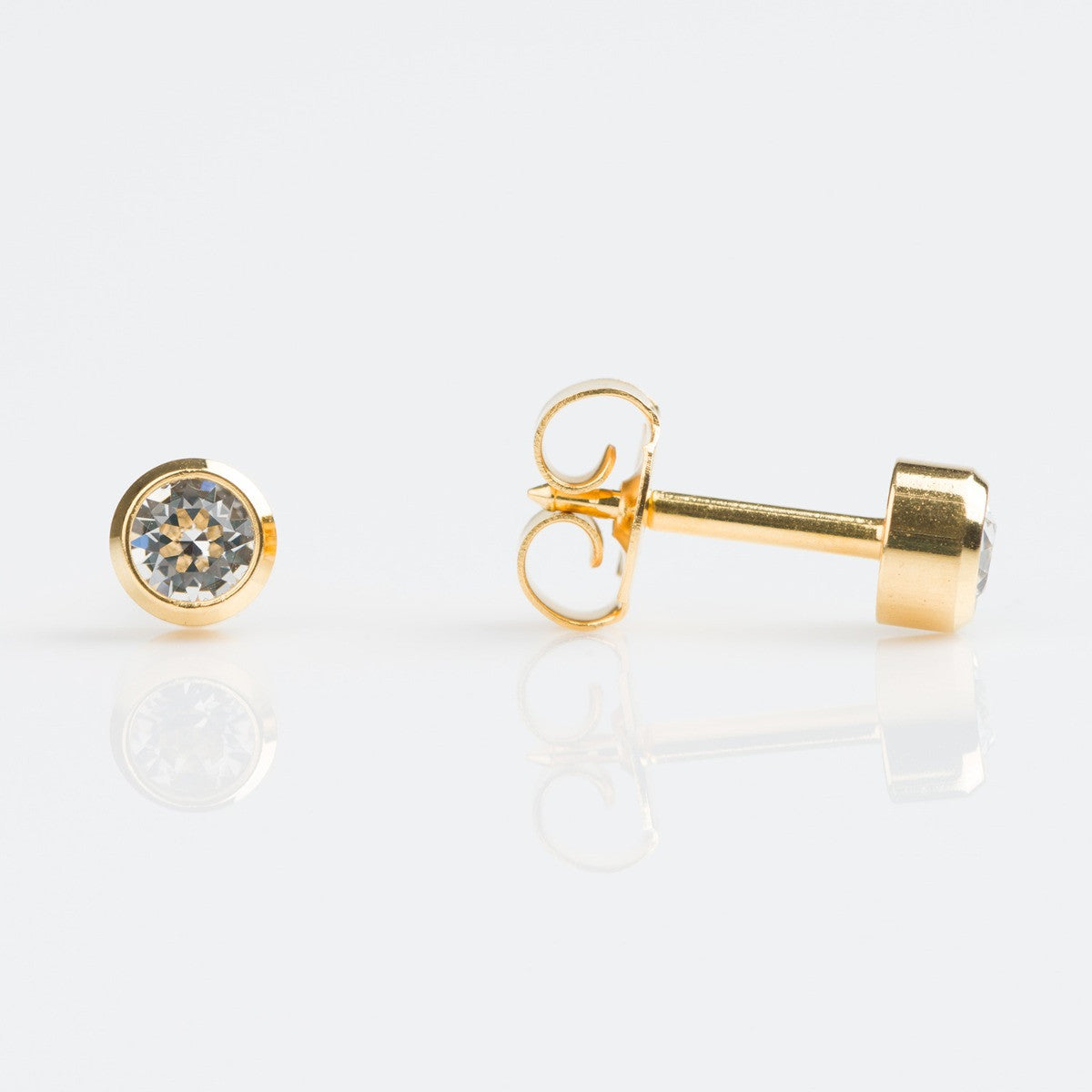 Studex Gold Plated Bezel April Studs - Pack of 12 Gold Plated Steel Colour: Yellow Gem Colour: Crystal All Sterile and EC compliant Studex Code: DCNL204Y