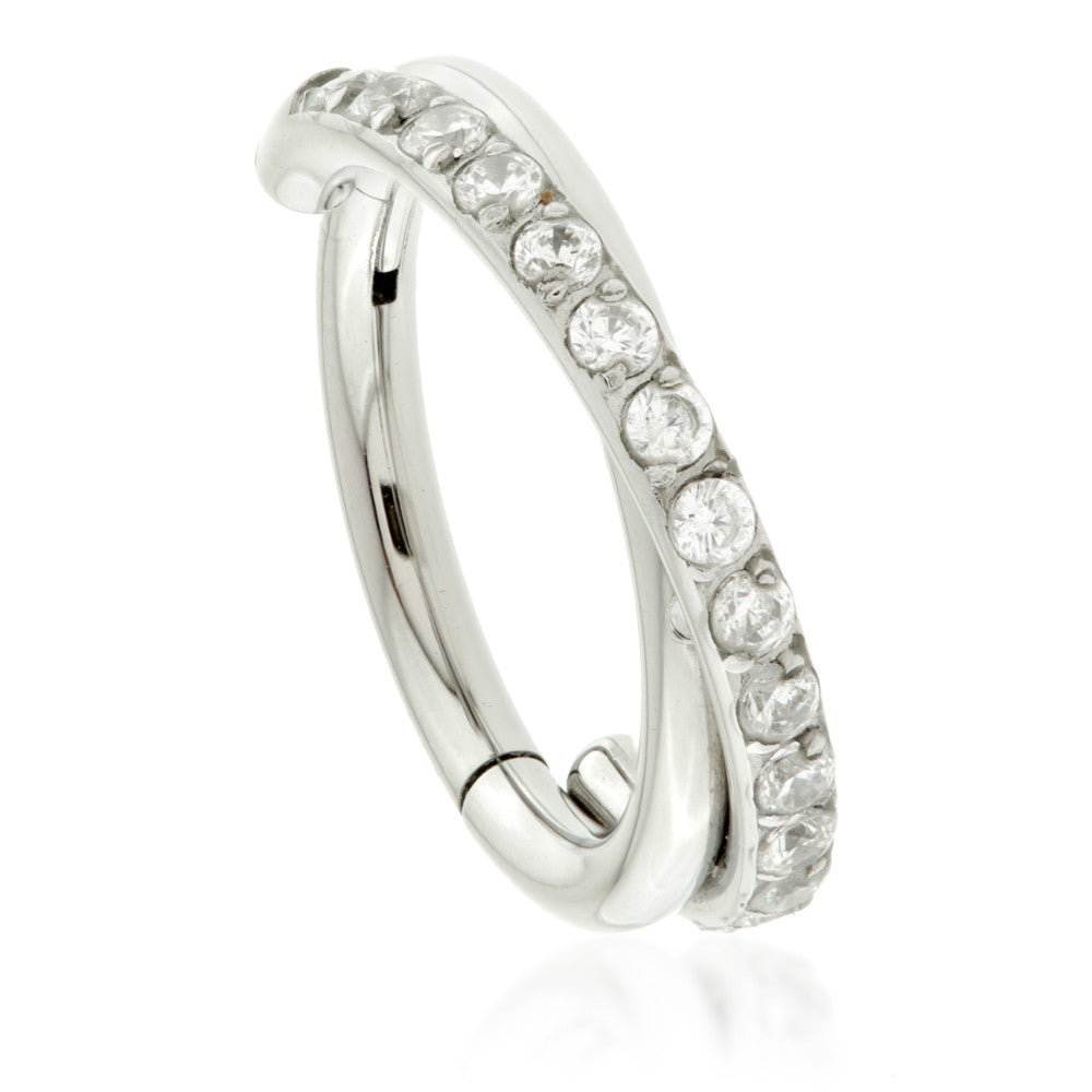 Titanium Pavˆš© Side Twist Hinged Ring Gauge: 1.2mm Sizes: 8mm Gem Colours: CR CZ Gem Stones Medical Grade Titanium 6Al-4VEli ASTM:F-136