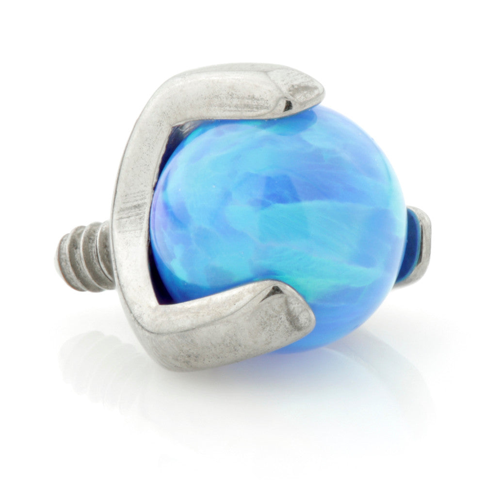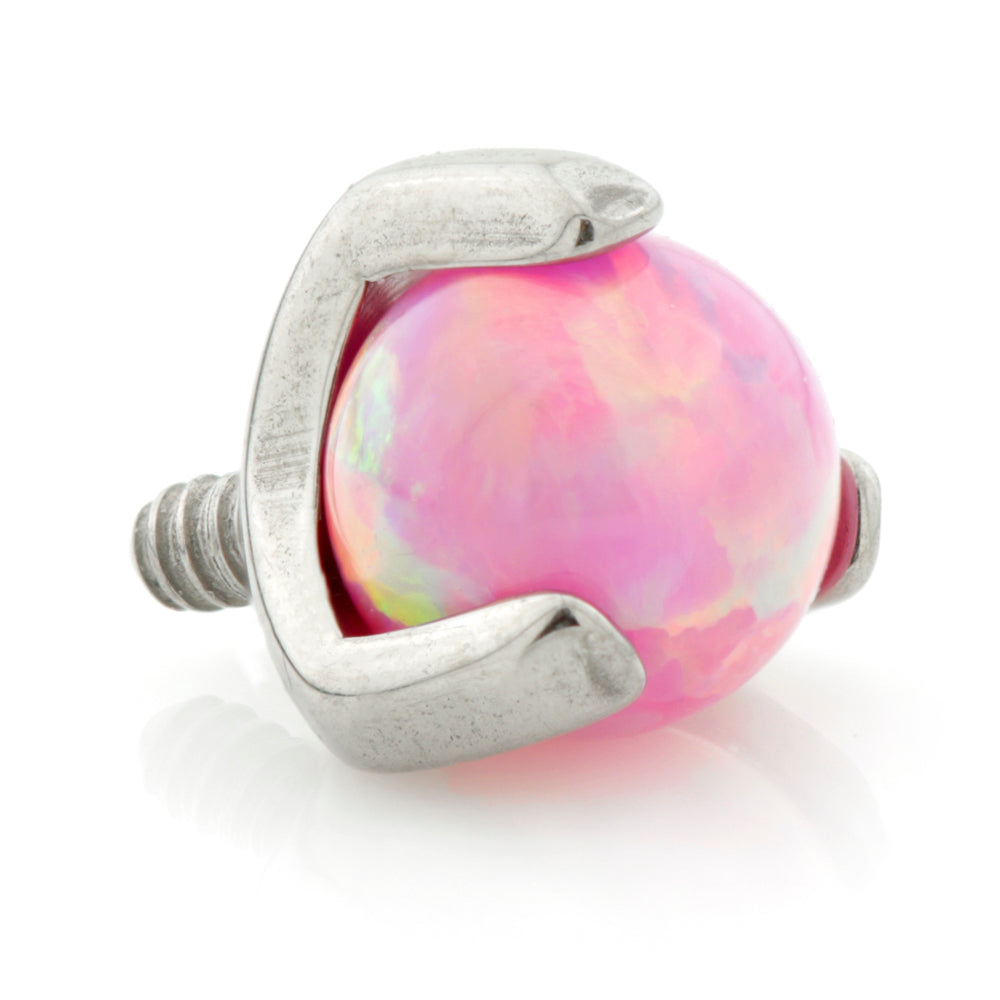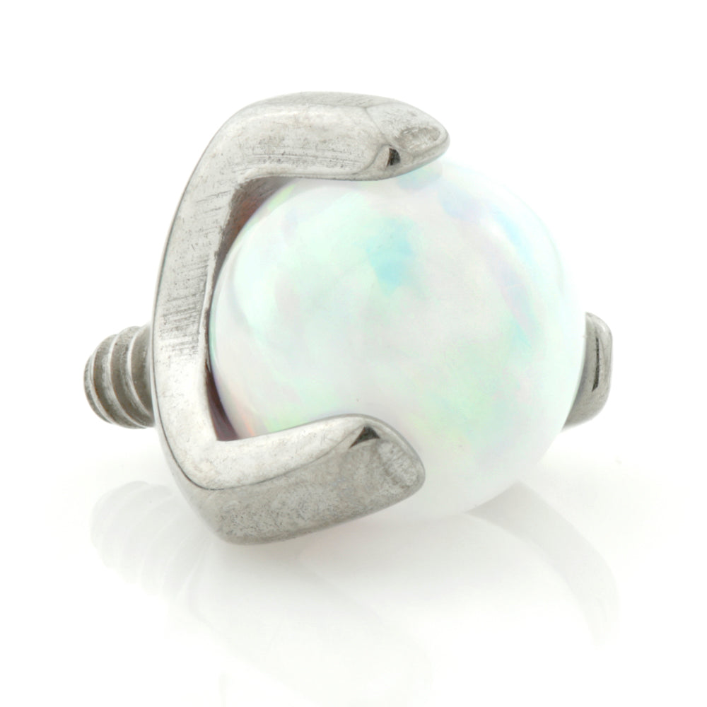 Titanium Opal Prong Set Ball Attachment Gauge 1.2mm with 0.9mm thread Opal Colours: White, Blue, Pink Titanium Colours Available Opal Size: 3mm Medical Grade Titanium 6Al-4VEli ASTM:F-136