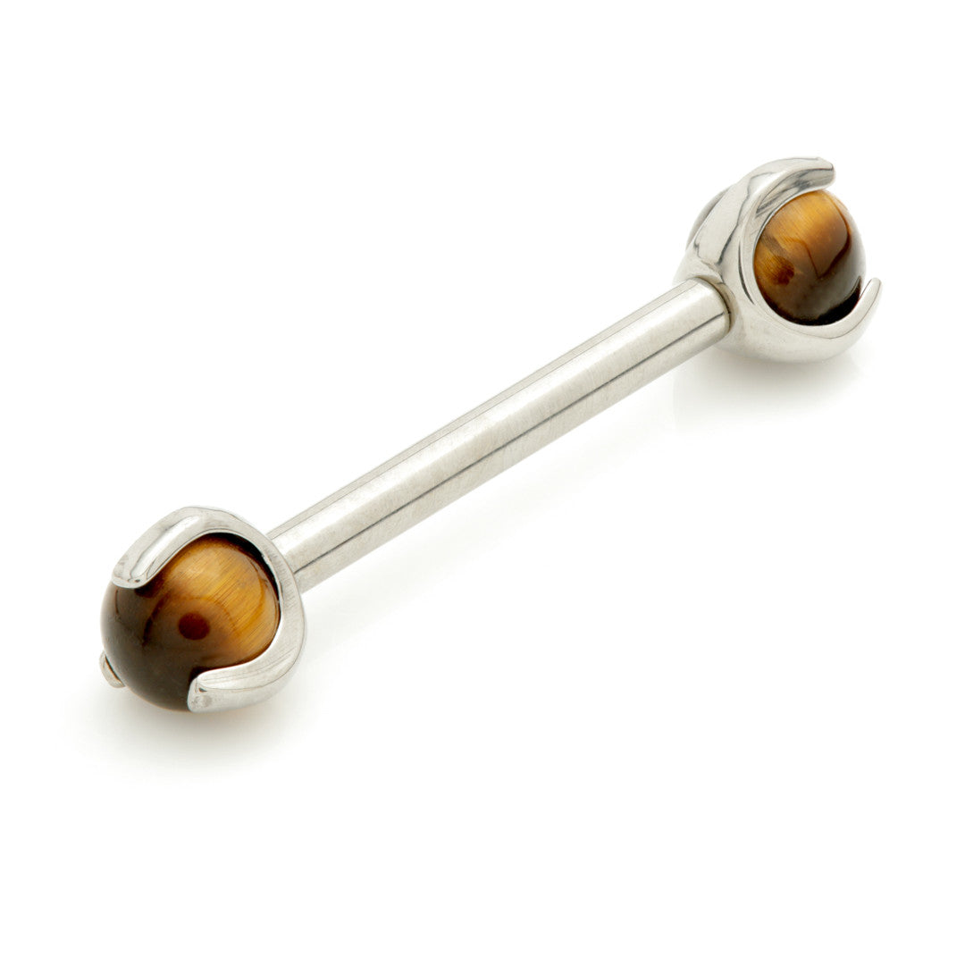 Ti Internal Prong Nipple Bar with Tiger Eye Stone