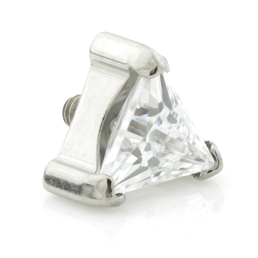 Internal Ti Triangle Gem Attachment only Gauge: 1.2mm (0.9mm Thread) Gem Size: 4mm Gem: Crystal Fits US Thread Medical Grade Titanium 6Al-4VEli ASTM:F-136