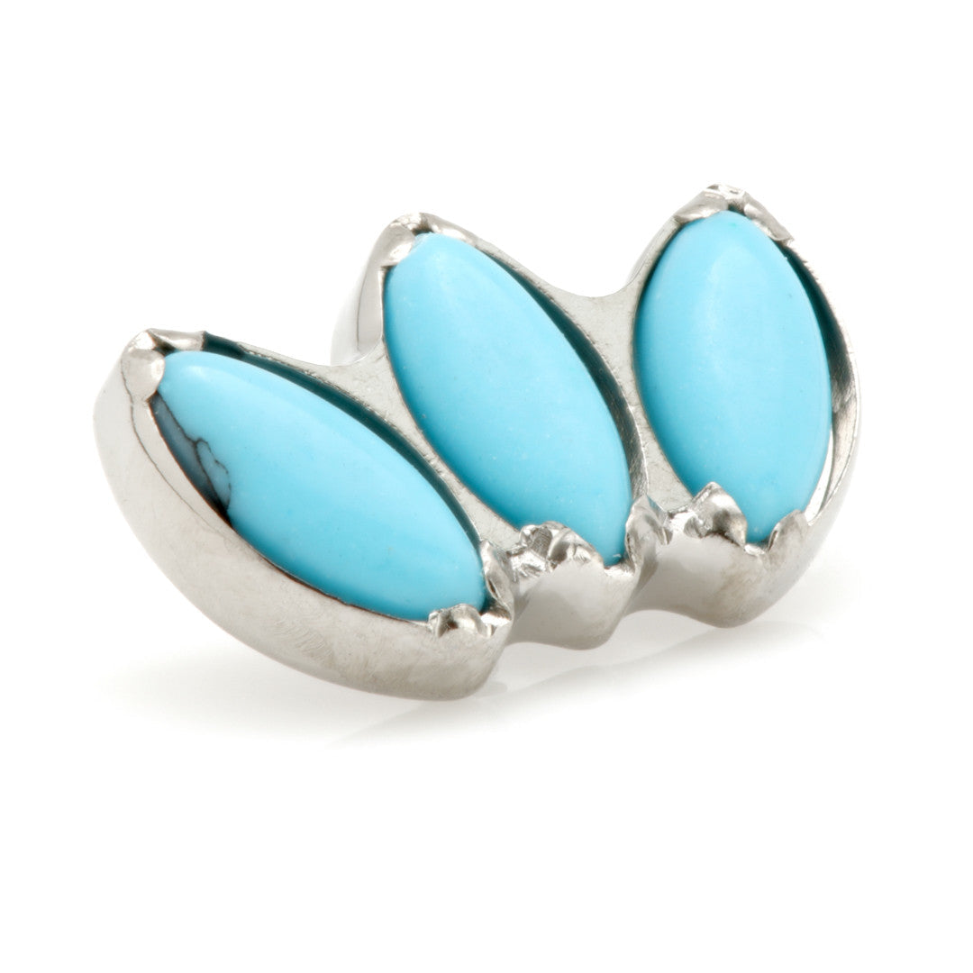 Titanium Internal Triple Marquise Attachment with Turquoise Stone Gauge: 1.2mm (0.9mm thread) Size: 5mm x 8mm Medical Grade Titanium 6Al-4VEli ASTM:F-136
