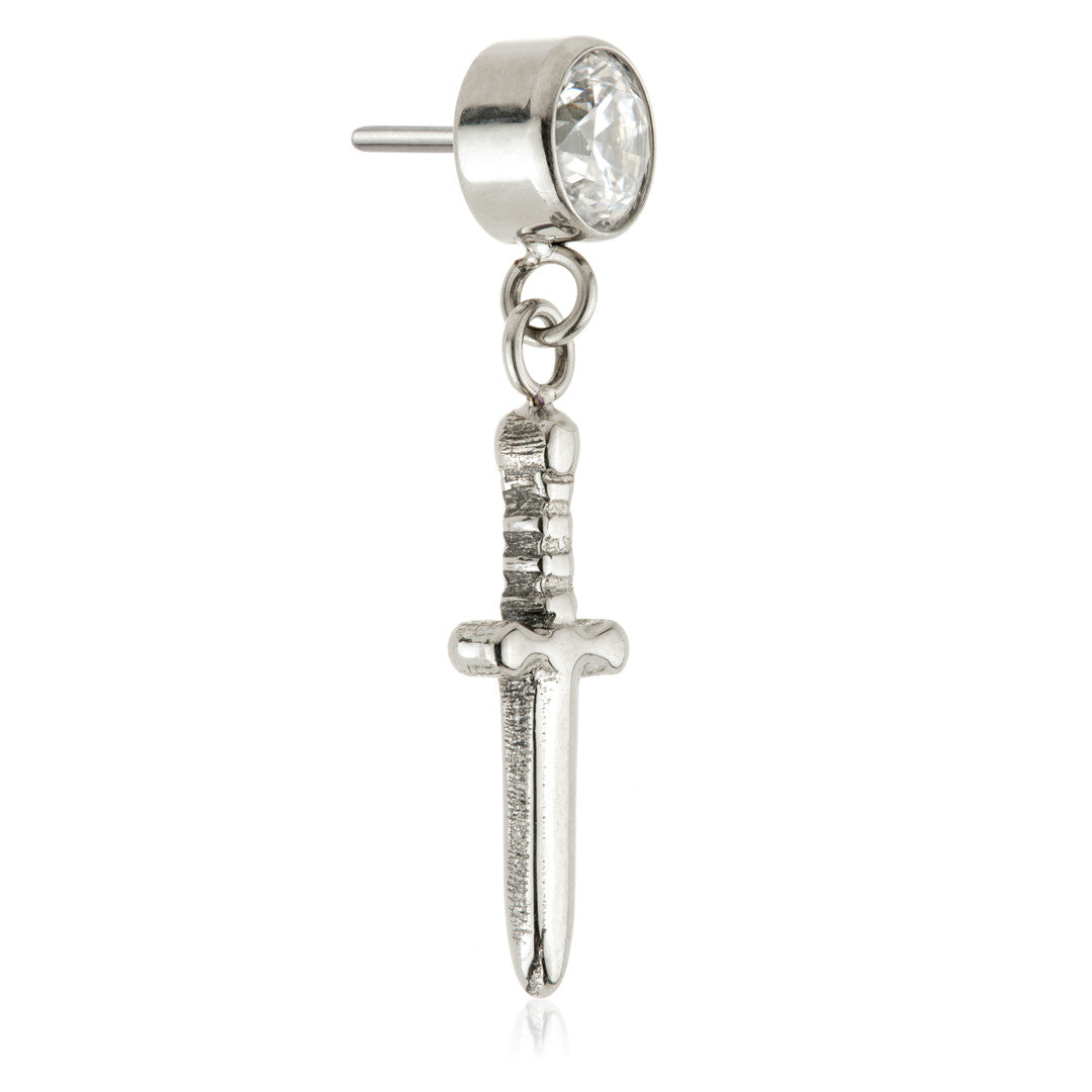 Ti Threadless Gem with Hanging Sword Charm Gem Colour: Crystal Medical Grade Titanium 6Al-4VEli ASTM:F-136