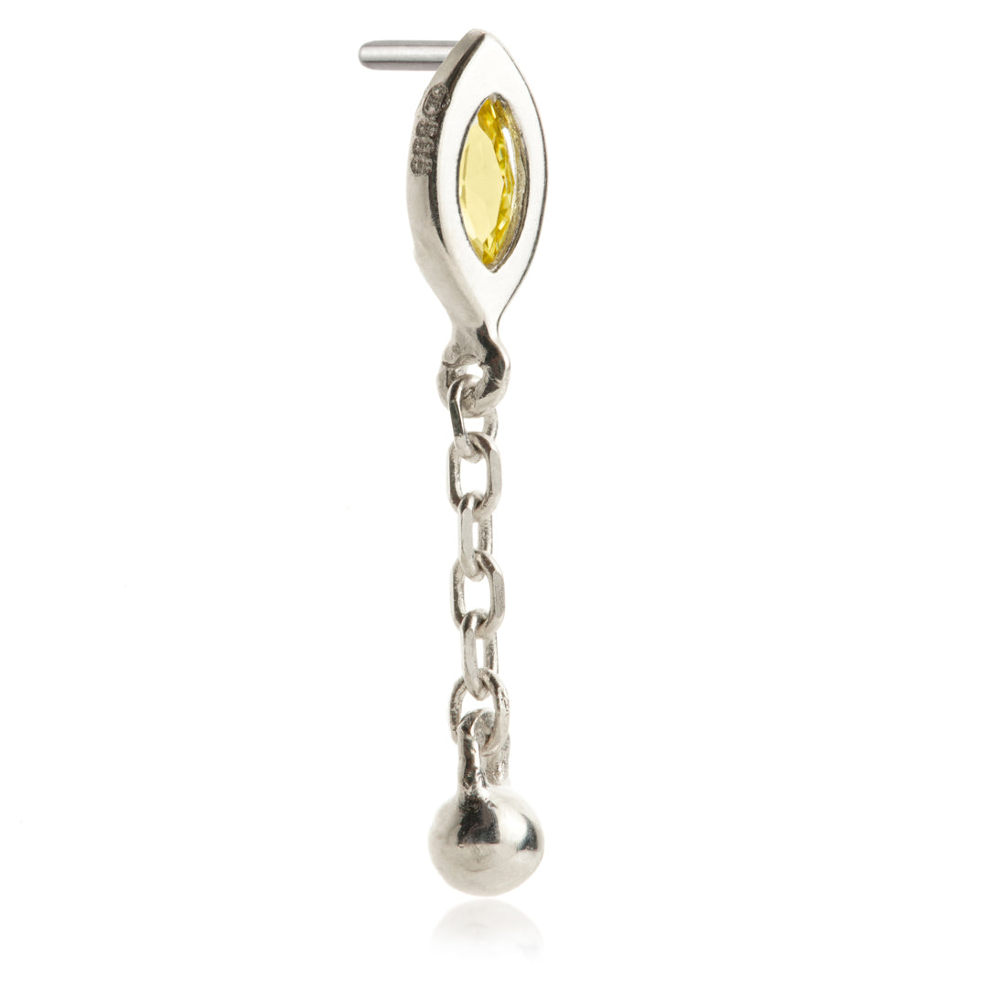 TISH LYON® 14ct Threadless Pear Gem & Ball Attachment Ball Size: 1.5mm Gem Size: 3*1.5mm Gold Colour: Yellow Gem Colour: CR CZ Gemstones 316L Surgical Steel Pin Packaged in small grey presentation box/card Suitable for initial piercing