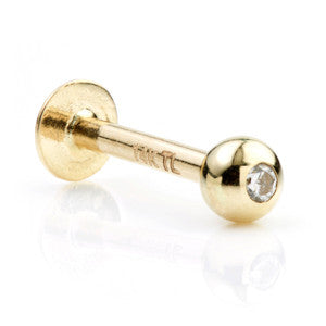 TISH LYON® 14ct Gold Plain Micro Labret Sizes: 1.2mm x 5/6/7/8/10/12mm Ball Size: 3mm Gold: Yellow, White or Rose Gem: Crystal 14ct Suitable for initial piercing