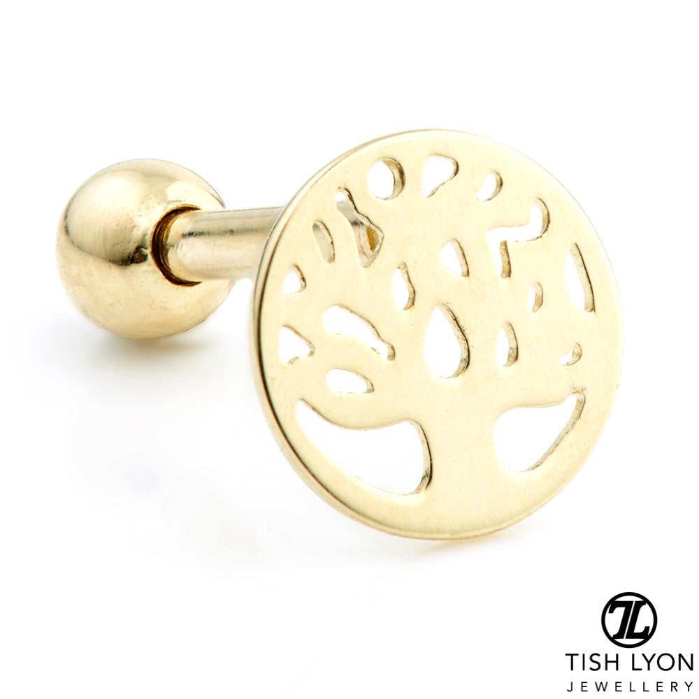 Tree Of Life Solid Gold Cartilage Barbell Earring