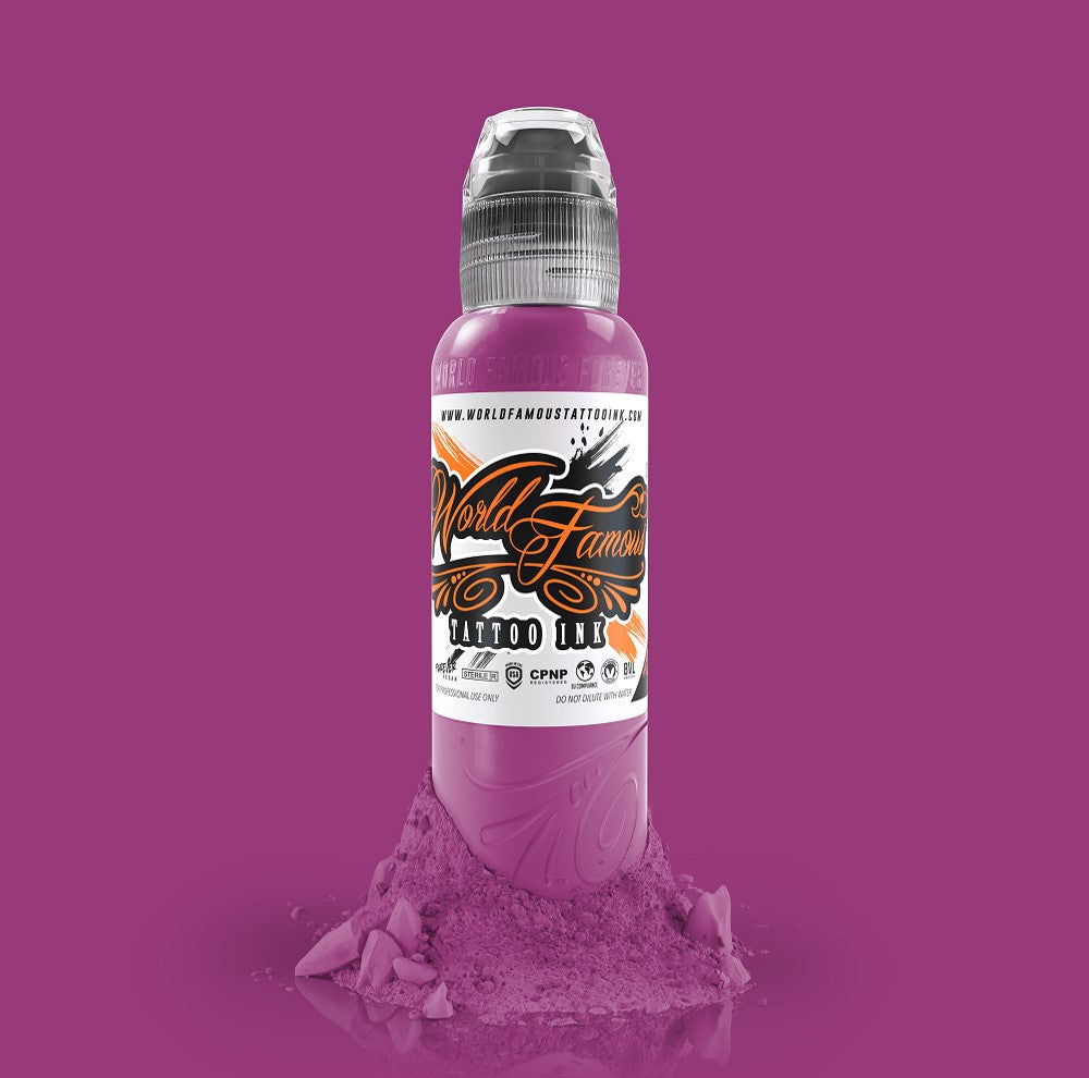 World Famous Tattoo Ink is revolutionizing the industry with their high-quality tattoo inks. Their dedication and knowledge of how to amplify tattoo artists’ work are reasons why they’re being used by the most sought-after artists around the world. World Famous inks are vegan-friendly. They are sterilized with gamma radiation and bottled in crystal-flex bottles with a secure twist cap and a tamper and waterproof label. Specifications: Color: Rolls Royce Purple Size Options: 1oz, 2oz High pigment load; easy application Vegan-friendly Tamper proof label; crystal-flex bottle with twist cap Manufactured in the USA Price per one bottle