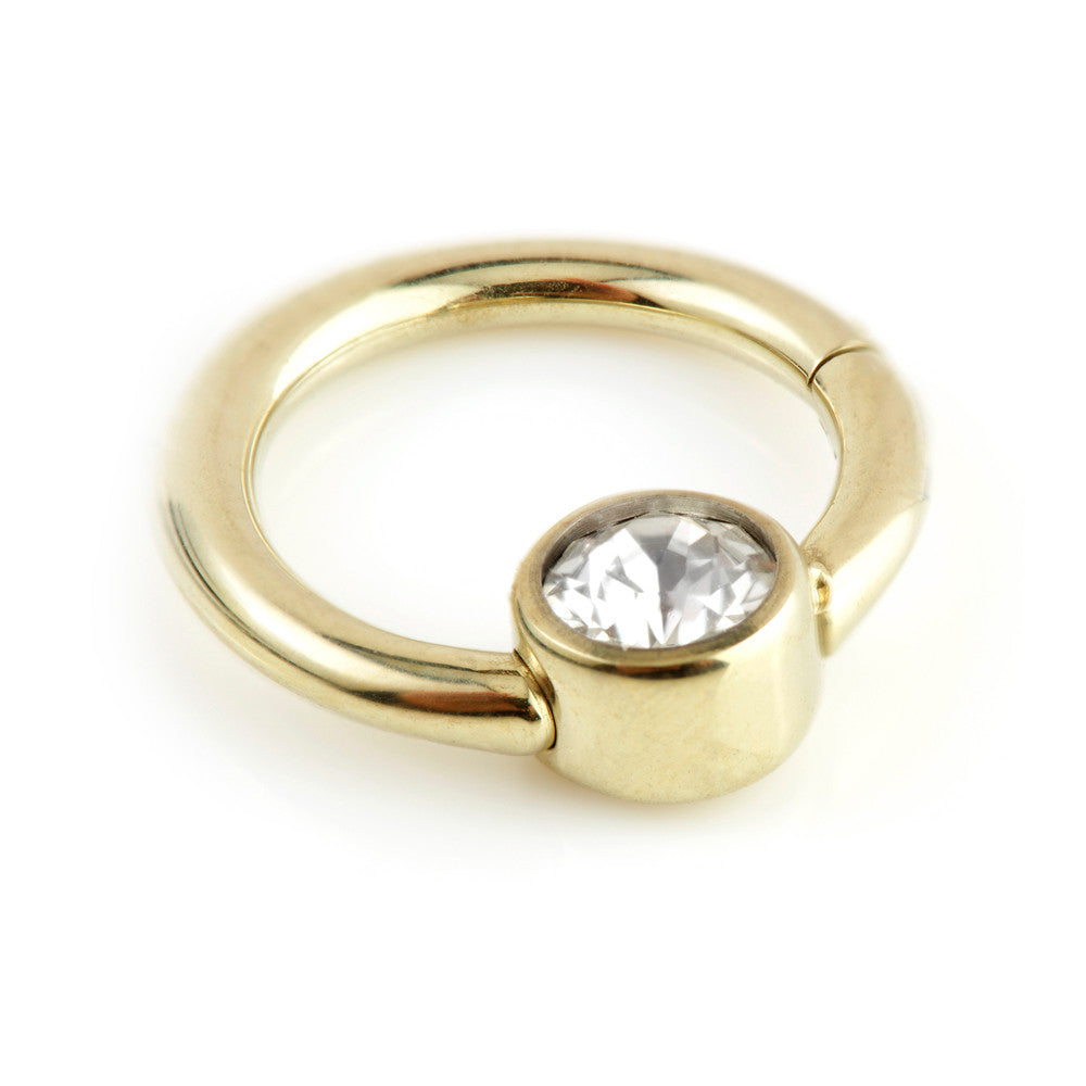 Zircon Gold PVD Ti Hinge Segment Ring with Gem