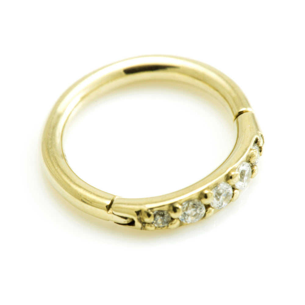 Zircon Gold Ti Half Pave Gems Hinged Micro Ring