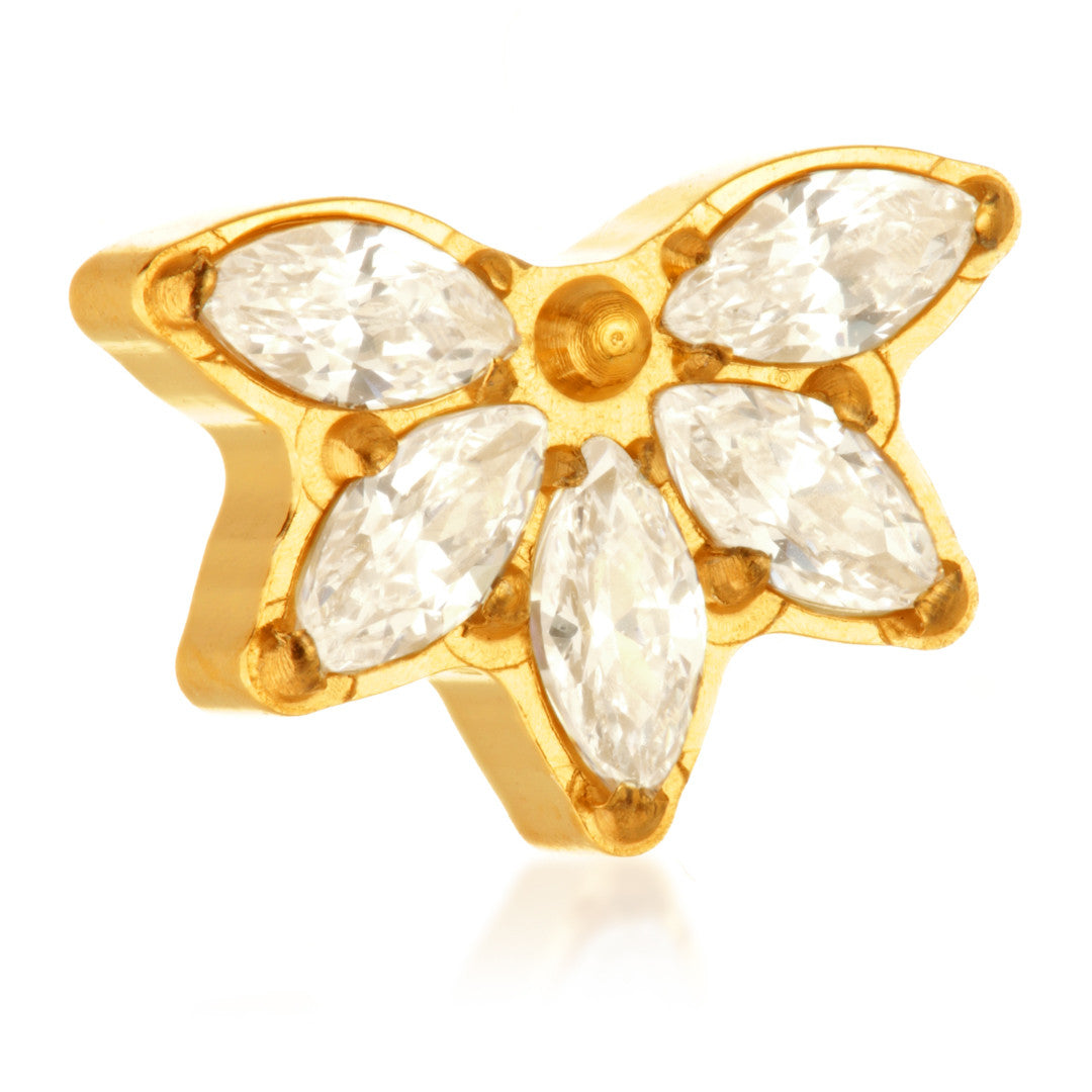 Zircon Gold Ti Marquise Petal Crescent Attachment Gauge: 1.2mm (0.9mm thread) Attachment Size: 8mm x 5mm Gem Colour: CR Medical Grade Titanium 6Al-4VEli ASTM:F-136