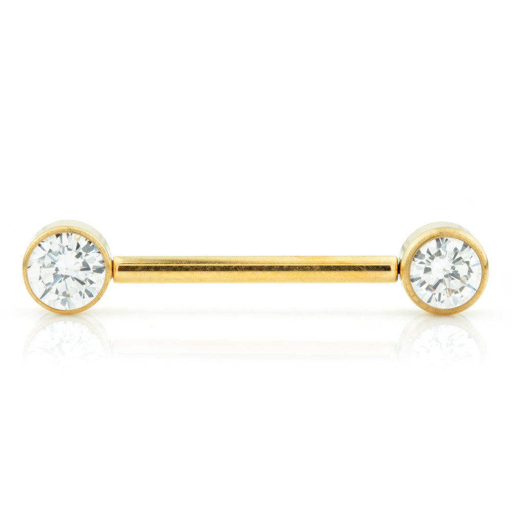 Zircon Gold Ti Threadless Forward Facing Double Jewelled Plain Disk Barbell